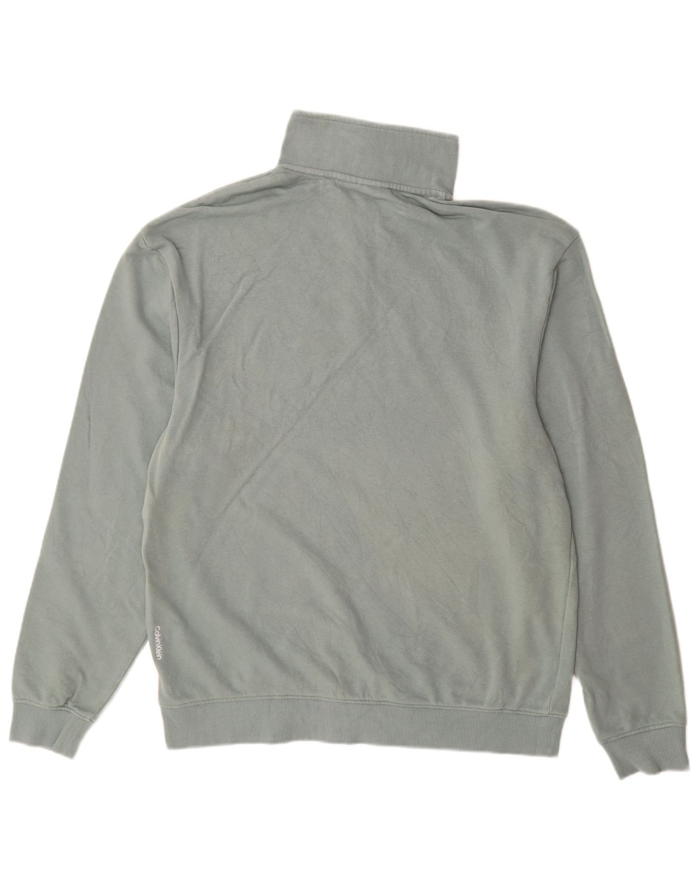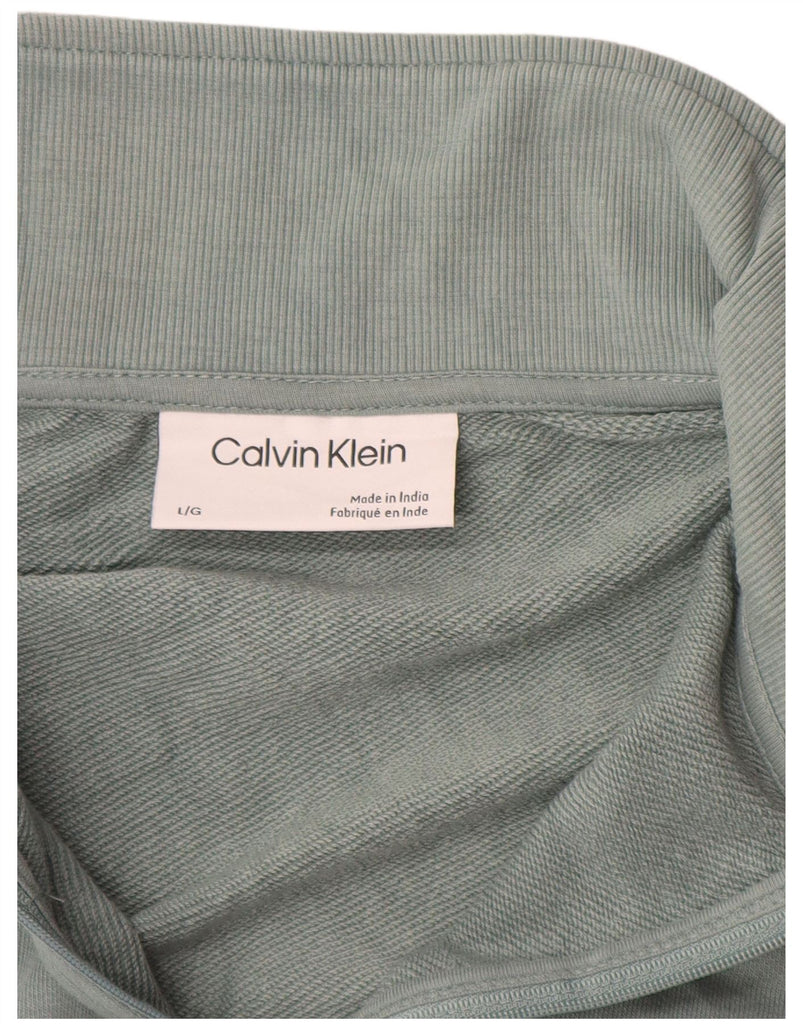 CALVIN KLEIN Mens Graphic Zip Neck Sweatshirt Jumper Large Green Cotton