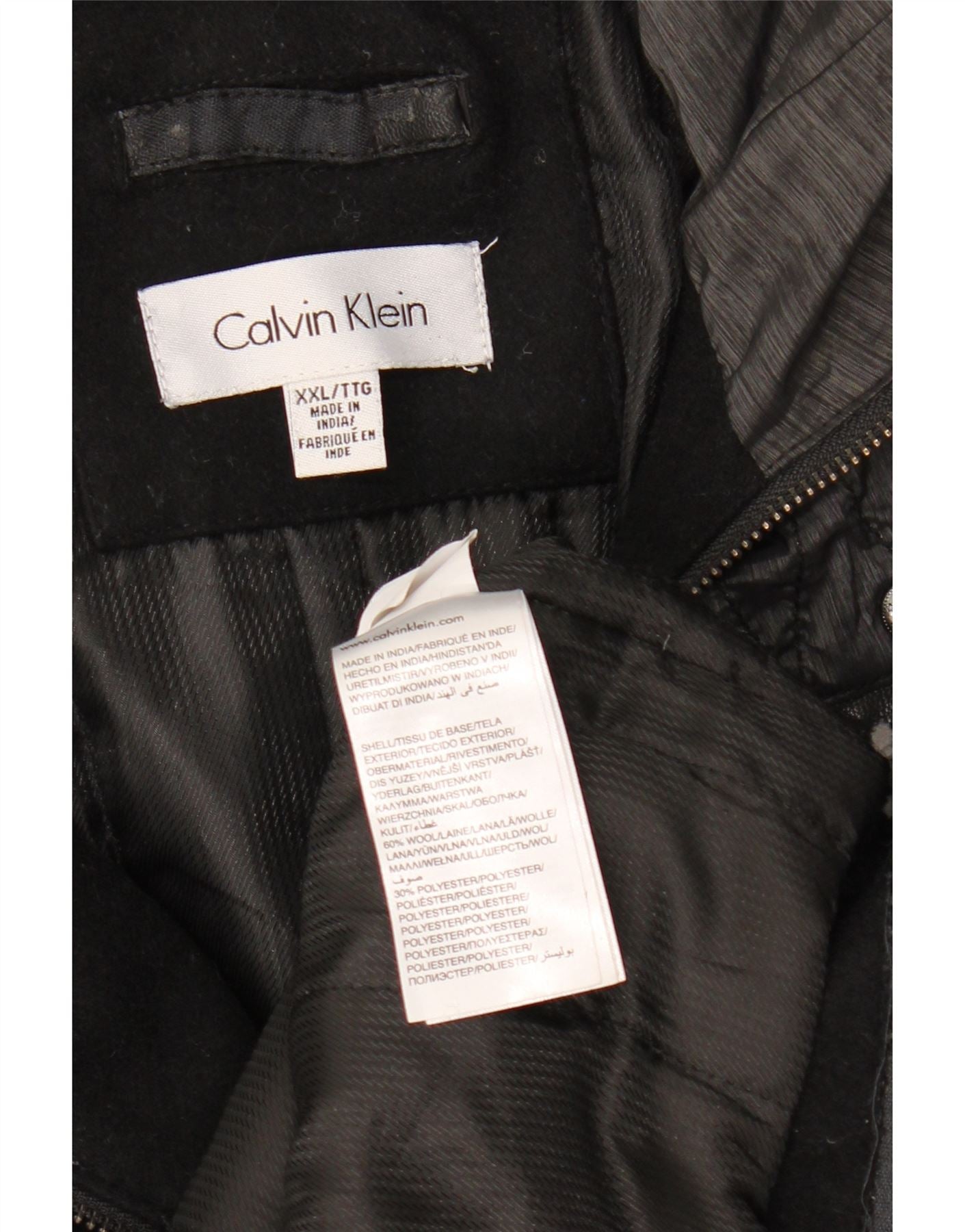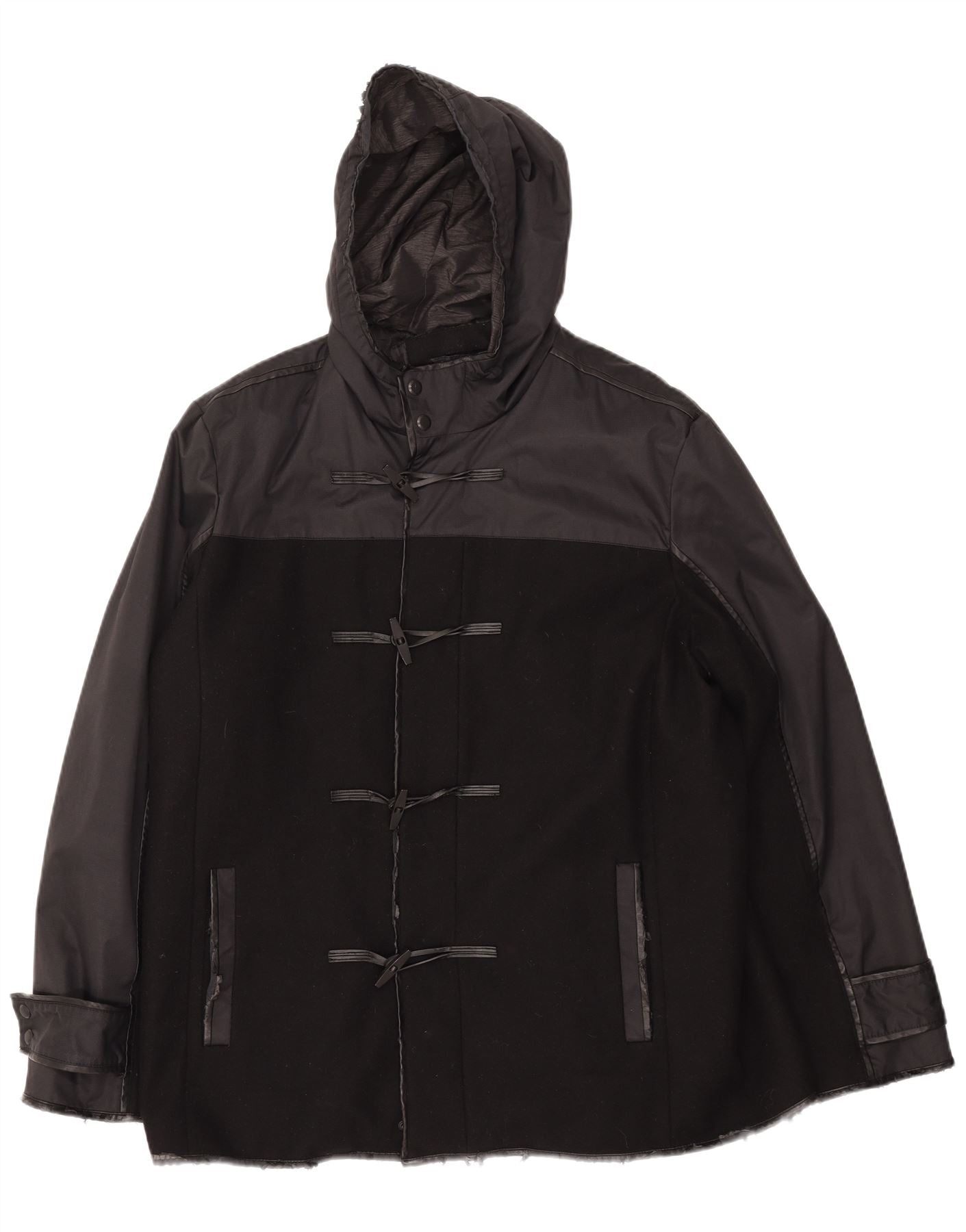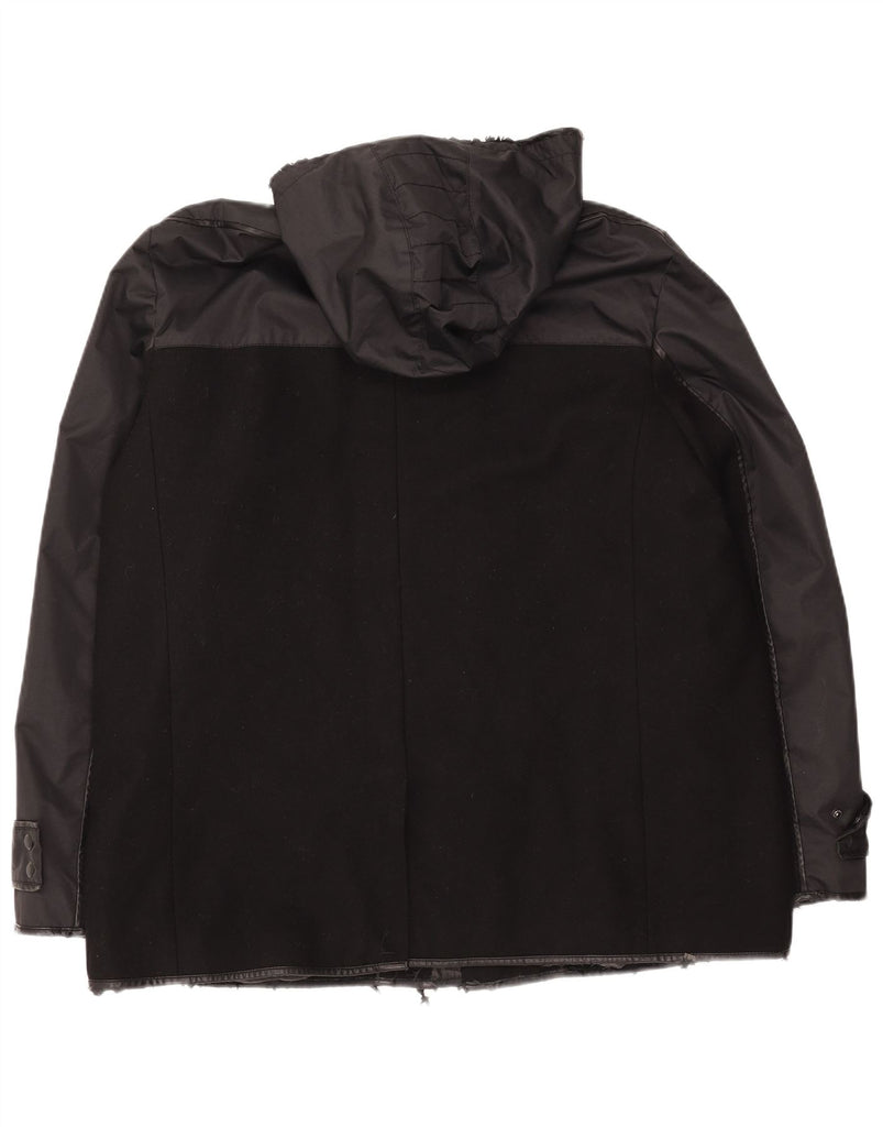 CALVIN KLEIN Mens Hooded Duffle Jacket UK 44 2XL Black Colourblock Wool