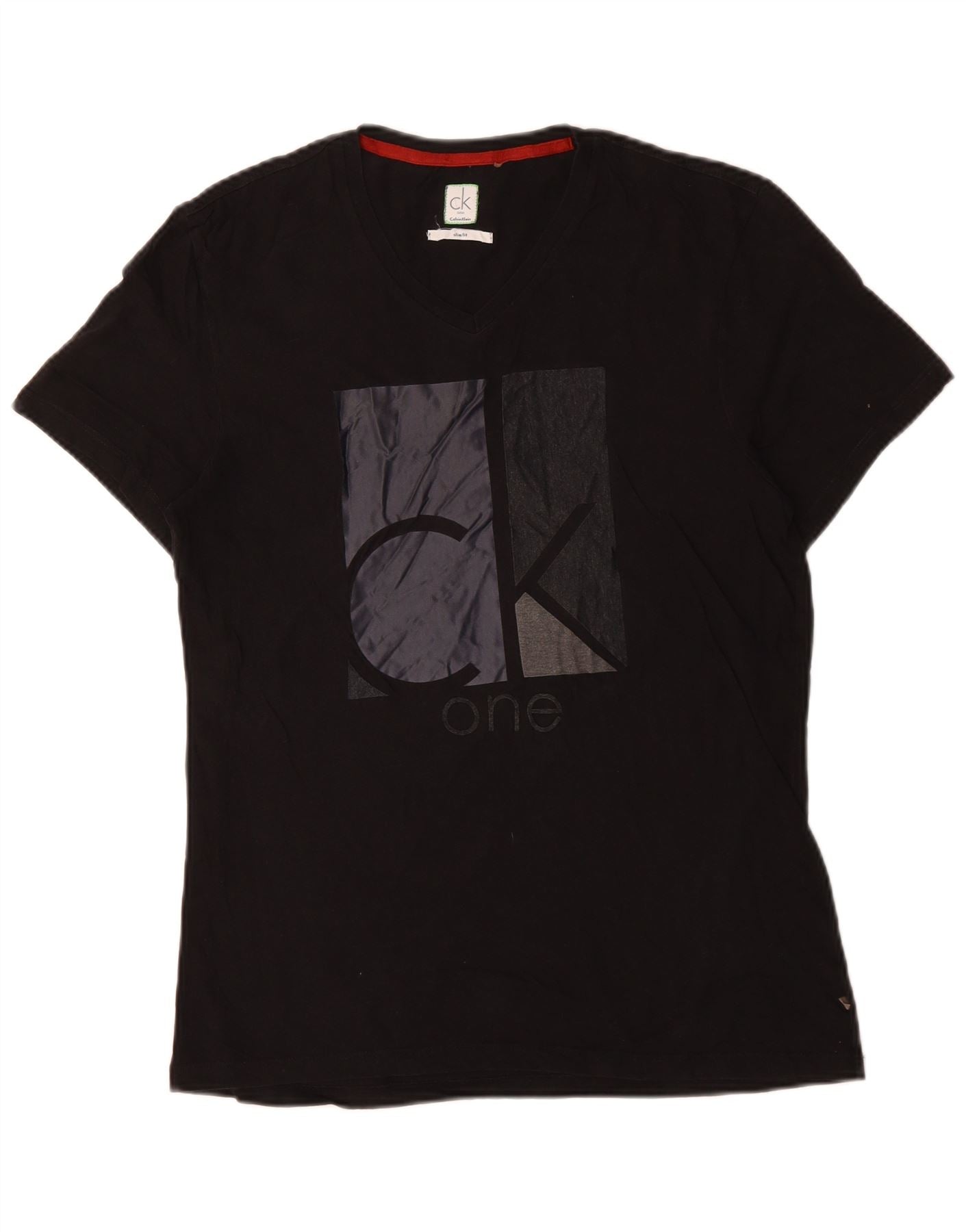 CALVIN KLEIN Camiseta ajustada con gráfico para hombre Top mediano de algodón negro