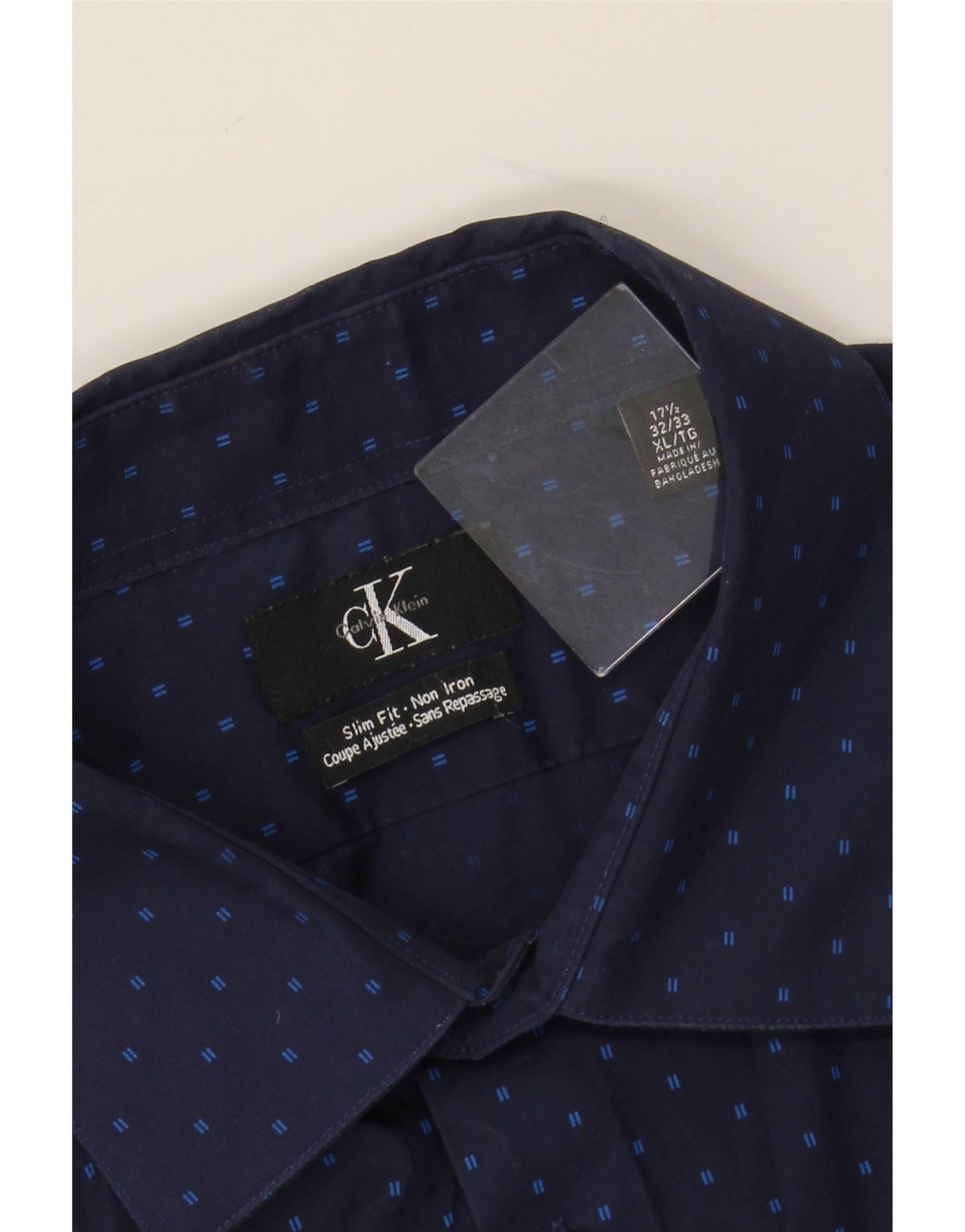 CALVIN KLEIN Camisa ajustada para hombre Talla 17 1/2 XL Algodón con lunares azul marino