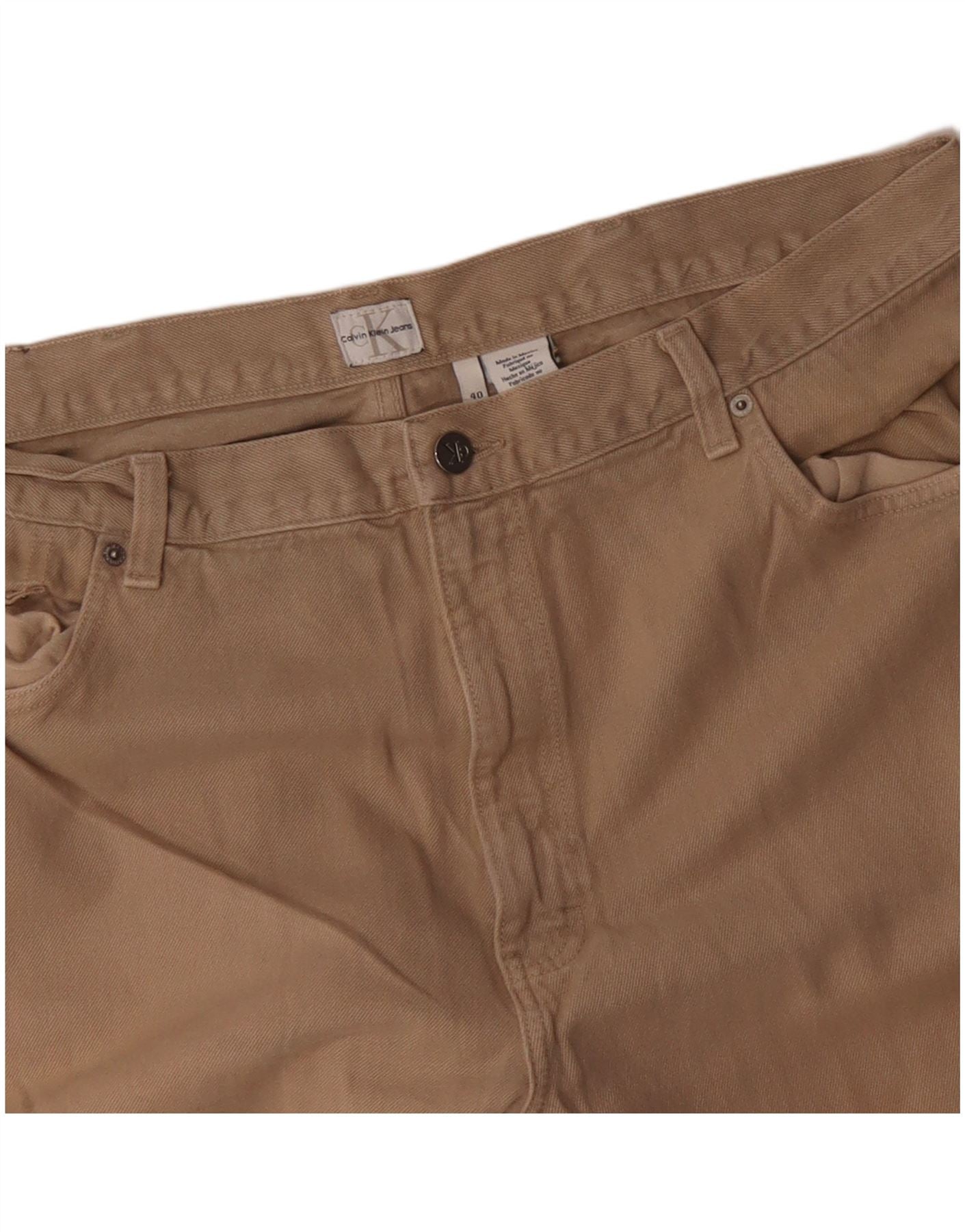 CALVIN KLEIN Pantalón casual recto para hombre W40 L30 Algodón beige
