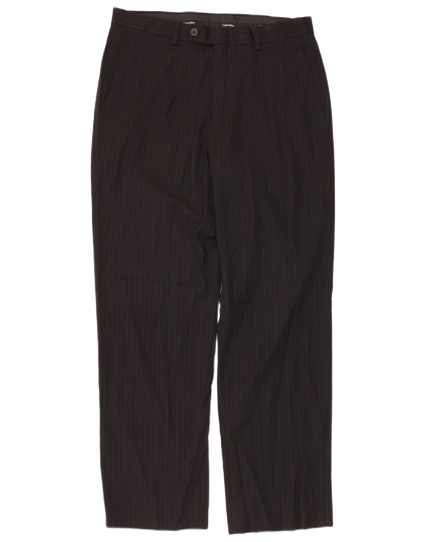 CALVIN KLEIN Pantalón de traje recto para hombre W31 L30 Poliéster negro a rayas