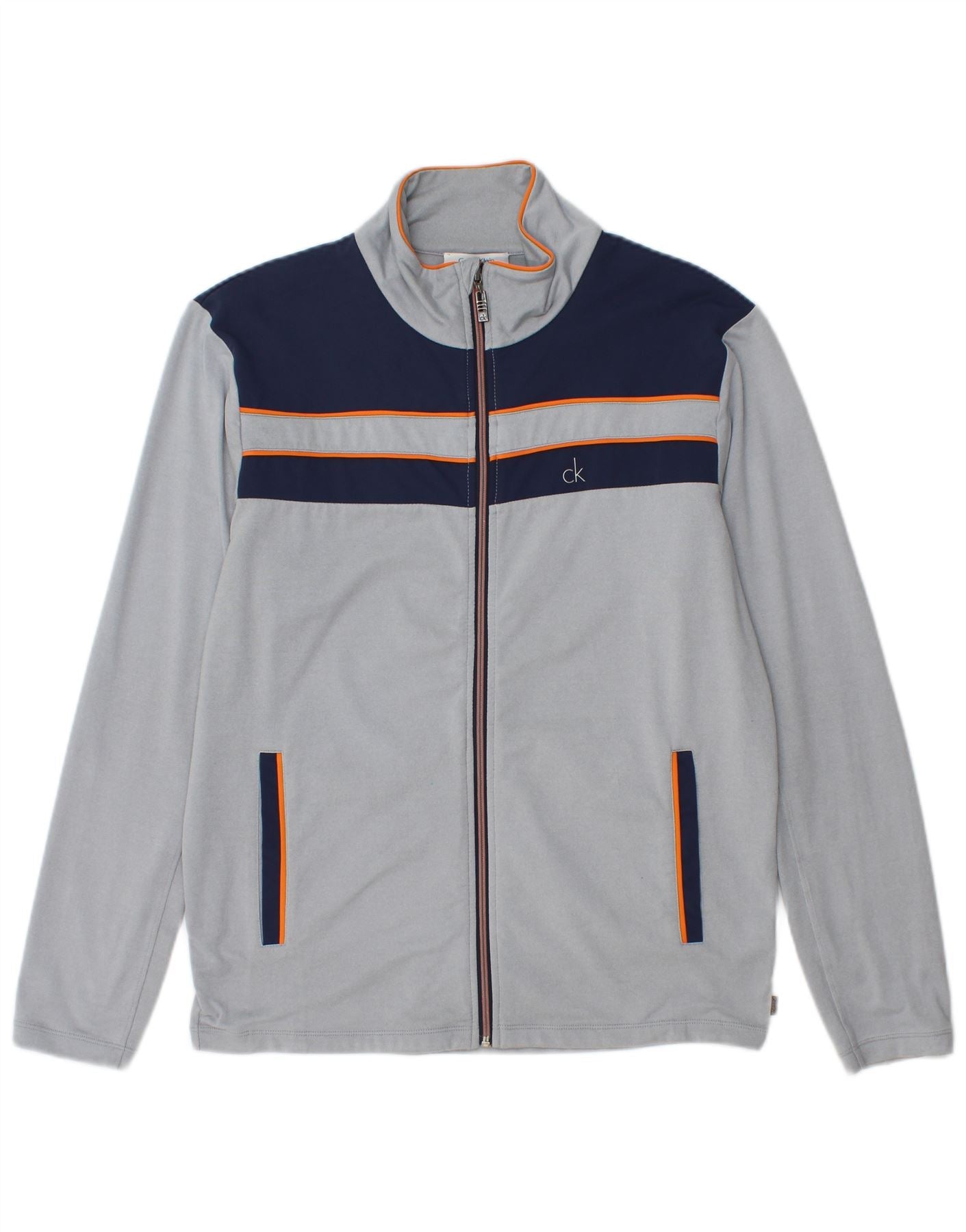 CALVIN KLEIN Mens Tracksuit Top Jacket Small Grey Colourblock Polyester