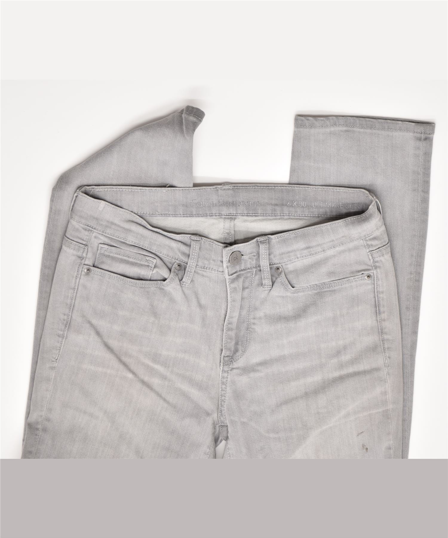 CALVIN KLEIN Vaqueros ajustados definitivos para mujer US 6 Medium W30 L27 Algodón gris