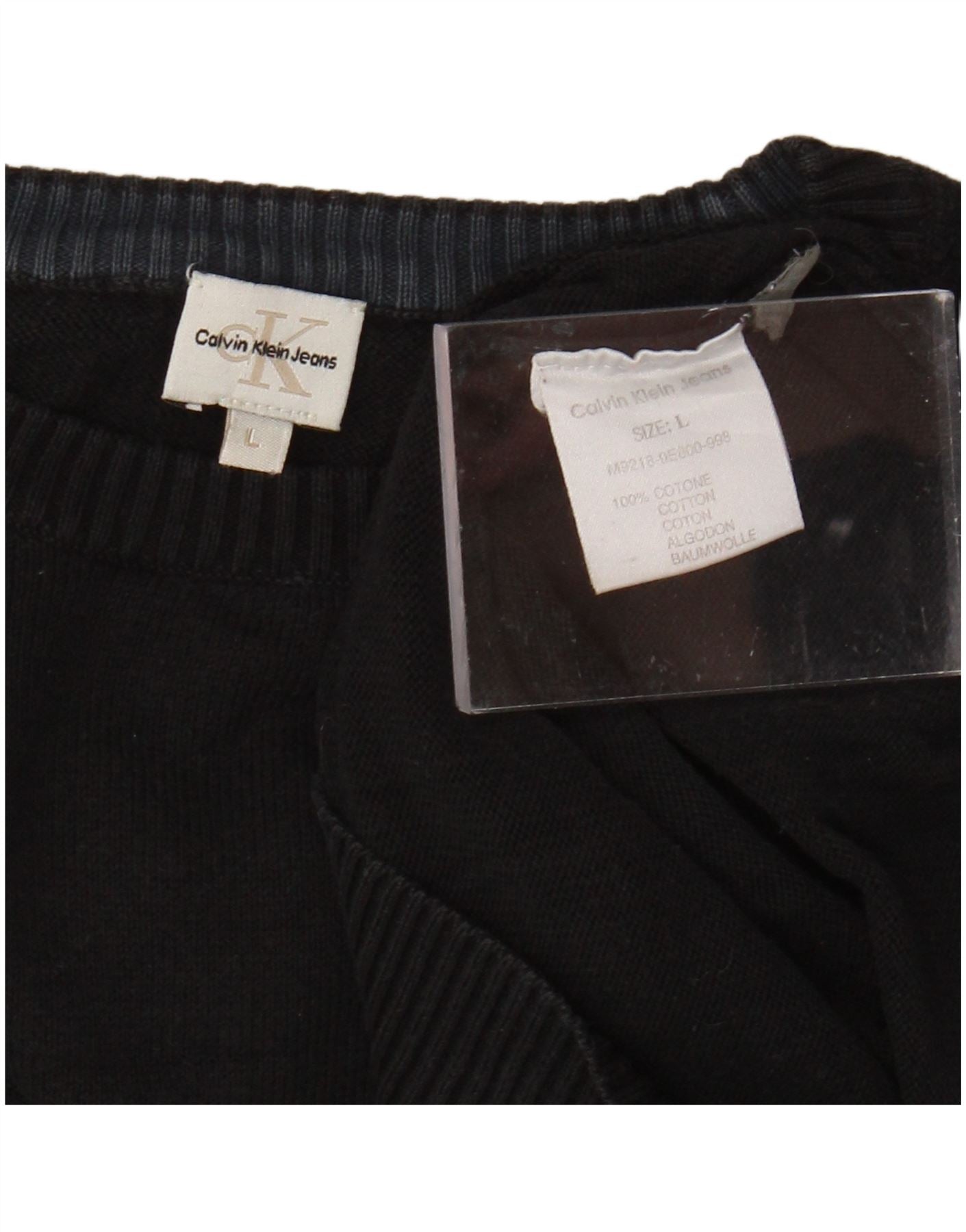CALVIN KLEIN Suéter tipo jersey con cuello redondo para mujer UK 46 Grande Negro