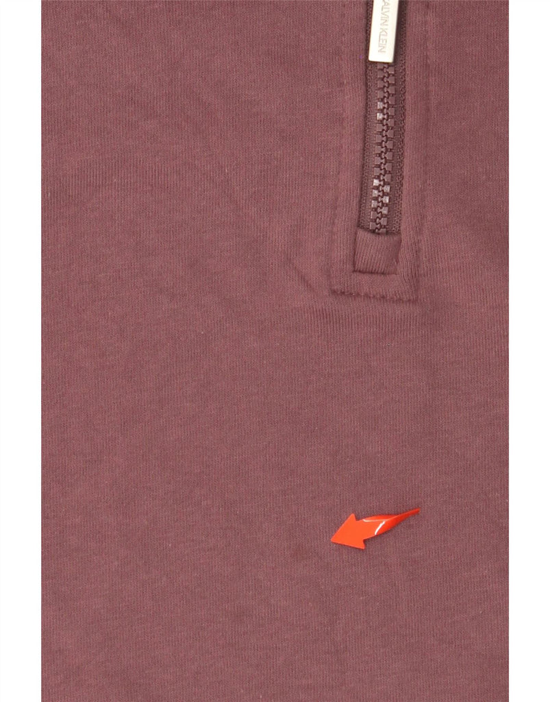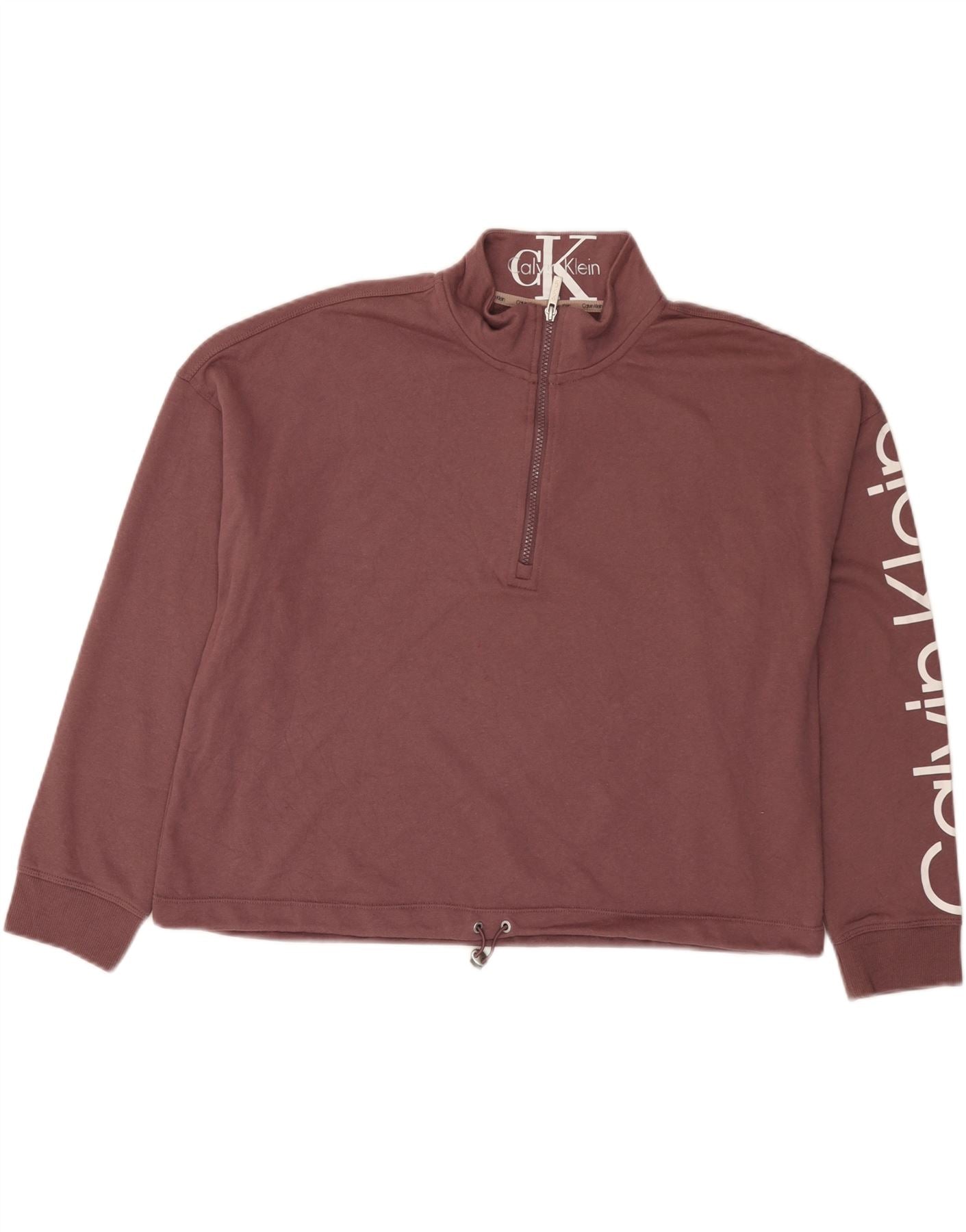 CALVIN KLEIN Womens Crop Graphic Zip Neck Sweatshirt Jumper UK 18 XL Brown