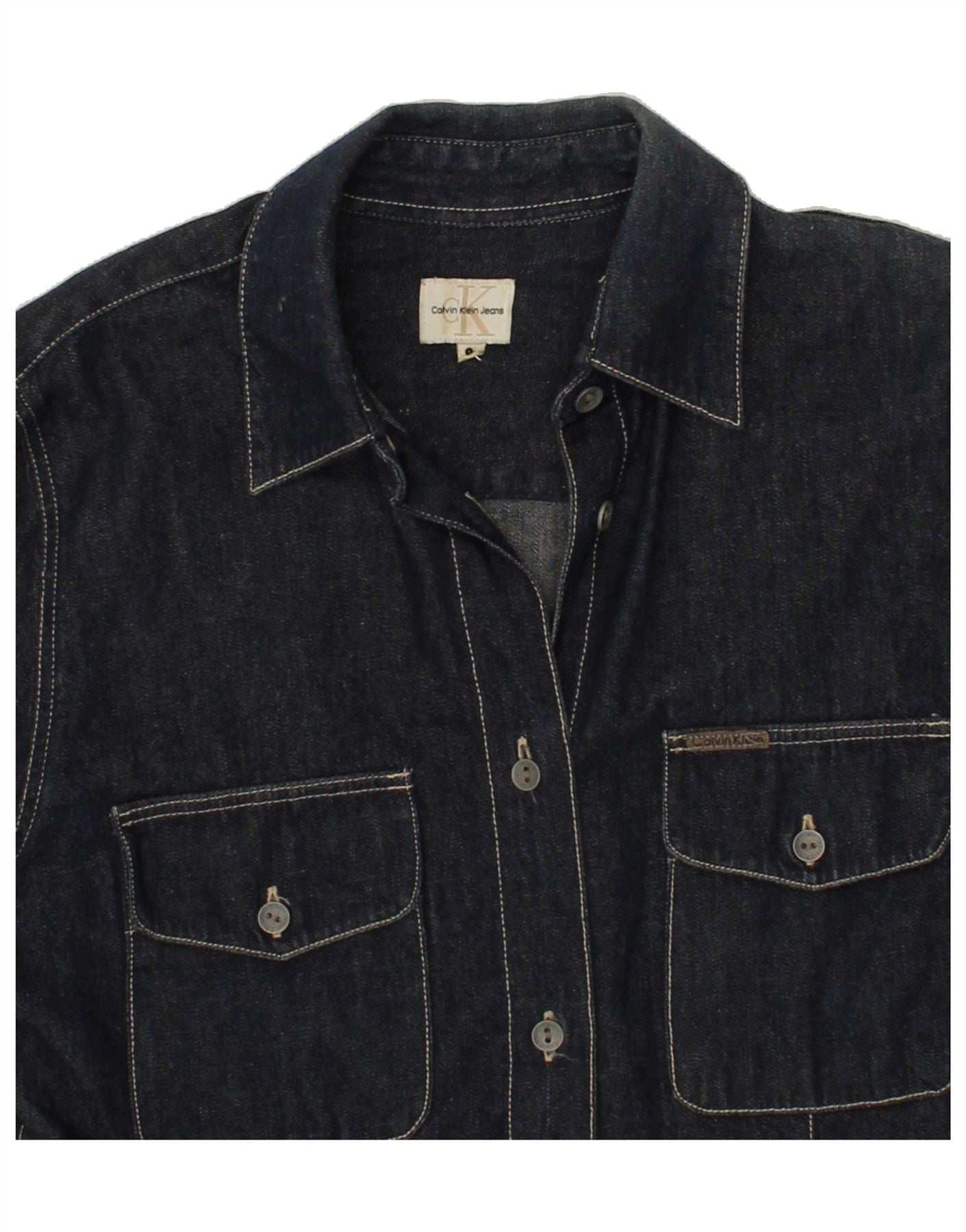 CALVIN KLEIN Womens Denim Shirt UK 10 Small Navy Blue Cotton