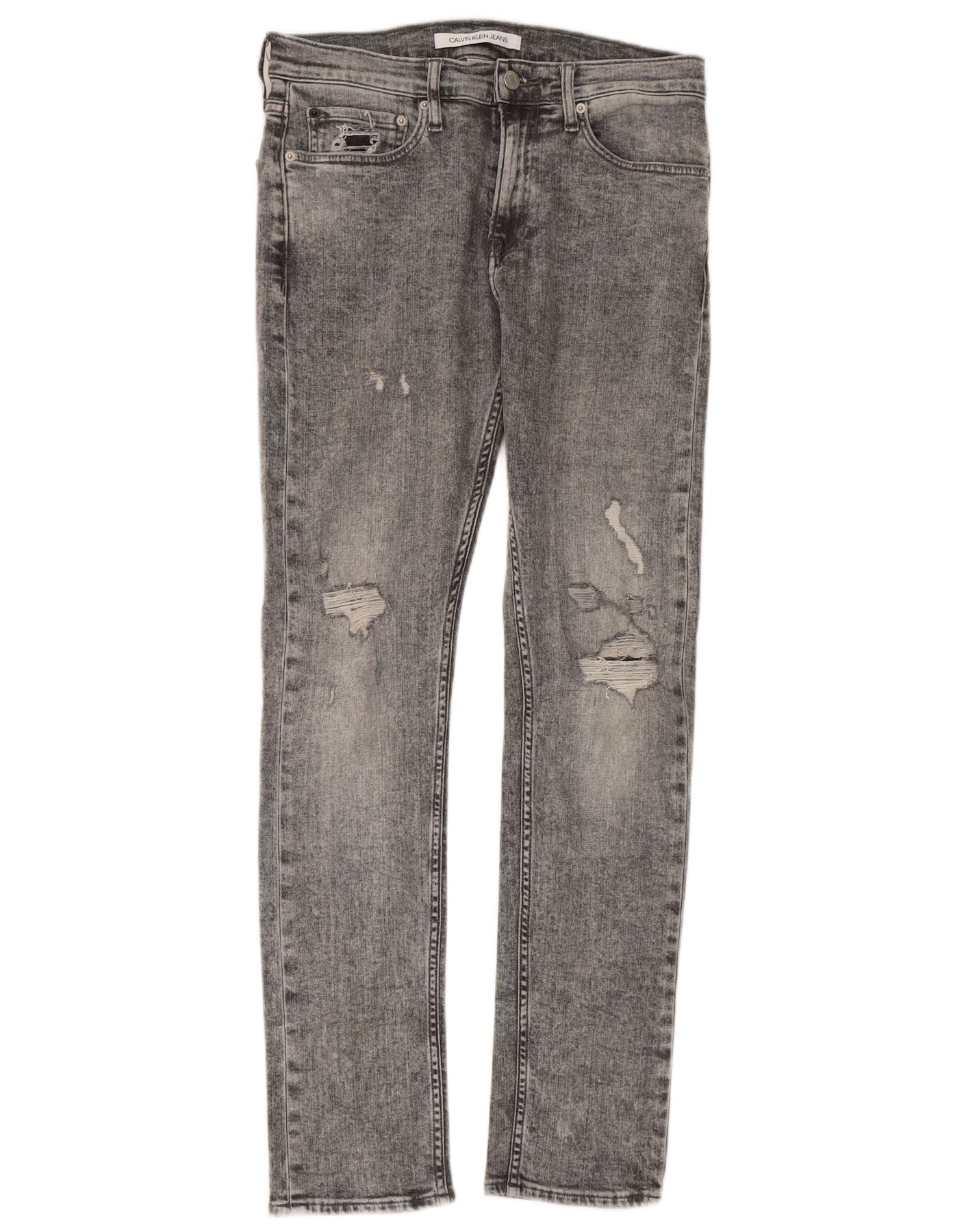 CALVIN KLEIN Vaqueros ajustados desgastados para mujer W29 L32 Algodón gris