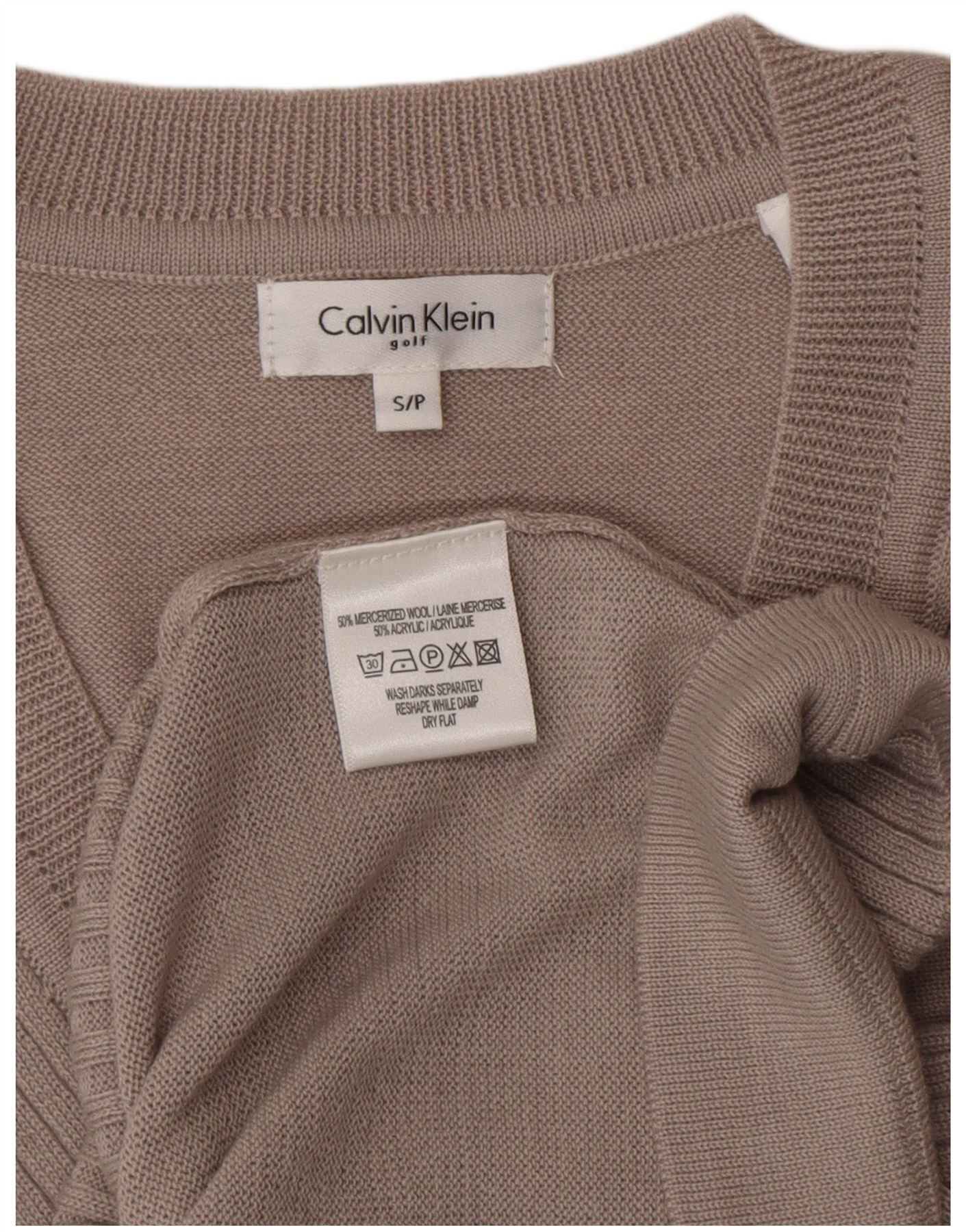 CALVIN KLEIN Suéter de golf con cuello en V para mujer UK 10 Small Beige Wool