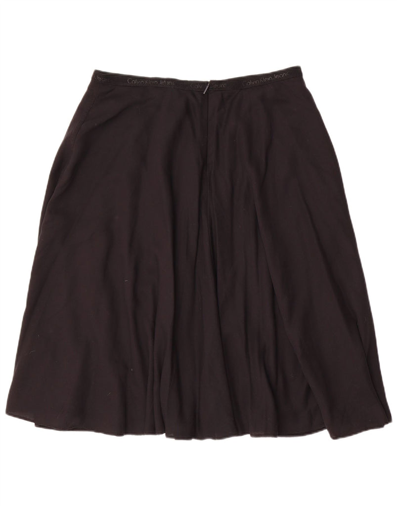 CALVIN KLEIN Womens Graphic Flared Skirt Large W32 Black Lyocell