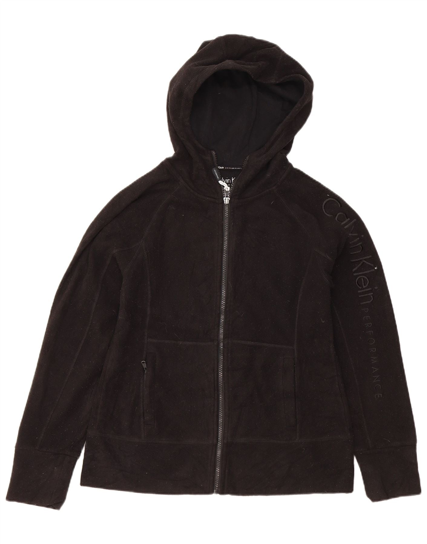 Calvin Klein Chaqueta de forro polar con capucha gráfica para mujer UK 10 Small Black