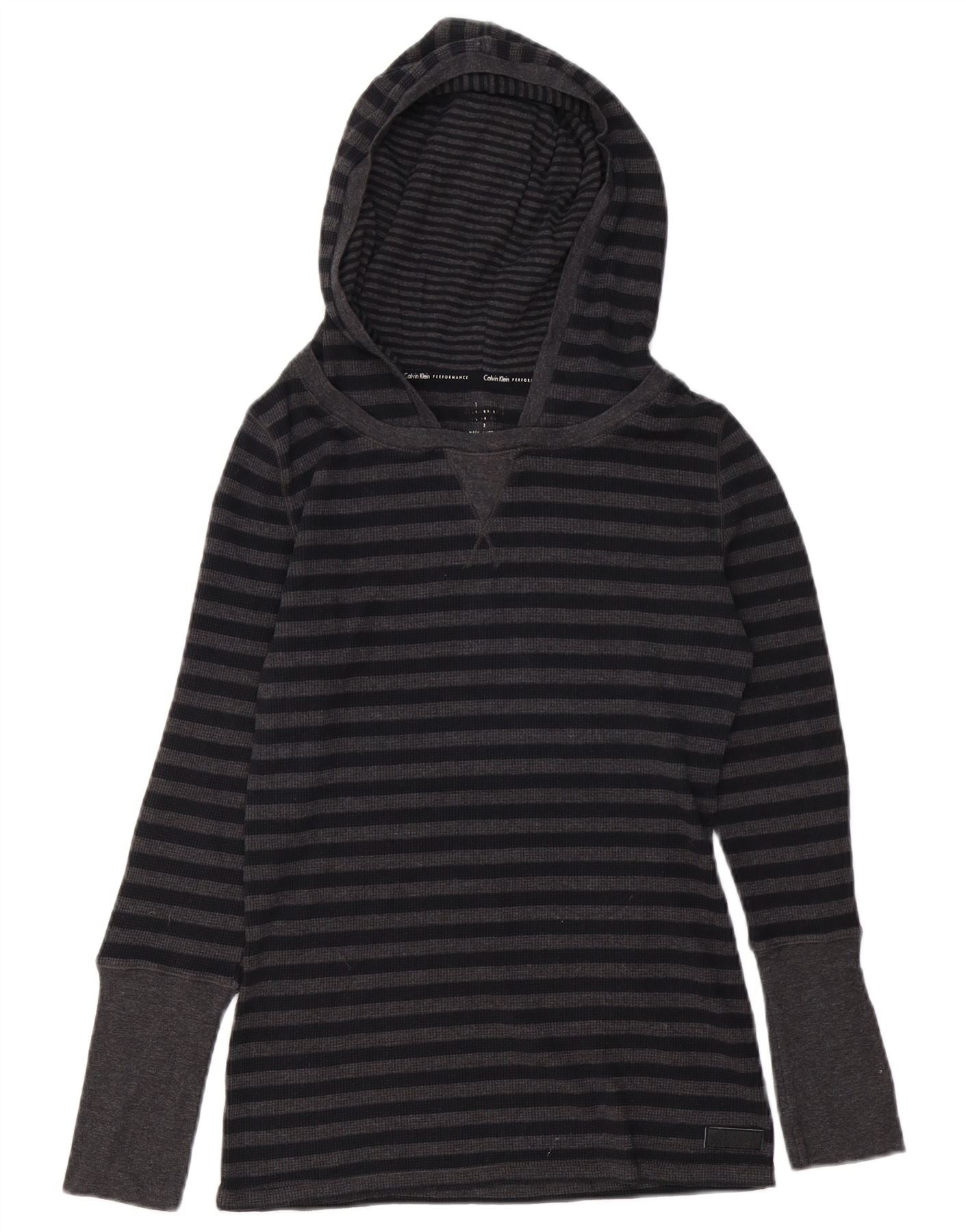 Calvin Klein Top con capucha para mujer Manga larga UK 12 Algodón a rayas gris medio