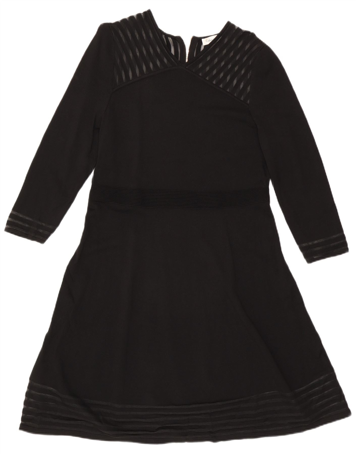CALVIN KLEIN Vestido acampanado de manga larga para mujer UK 40 XL Rayón negro a rayas