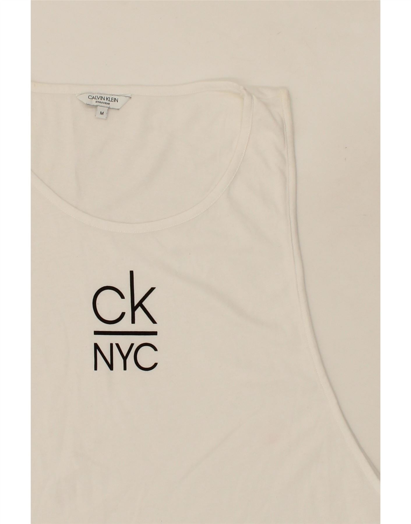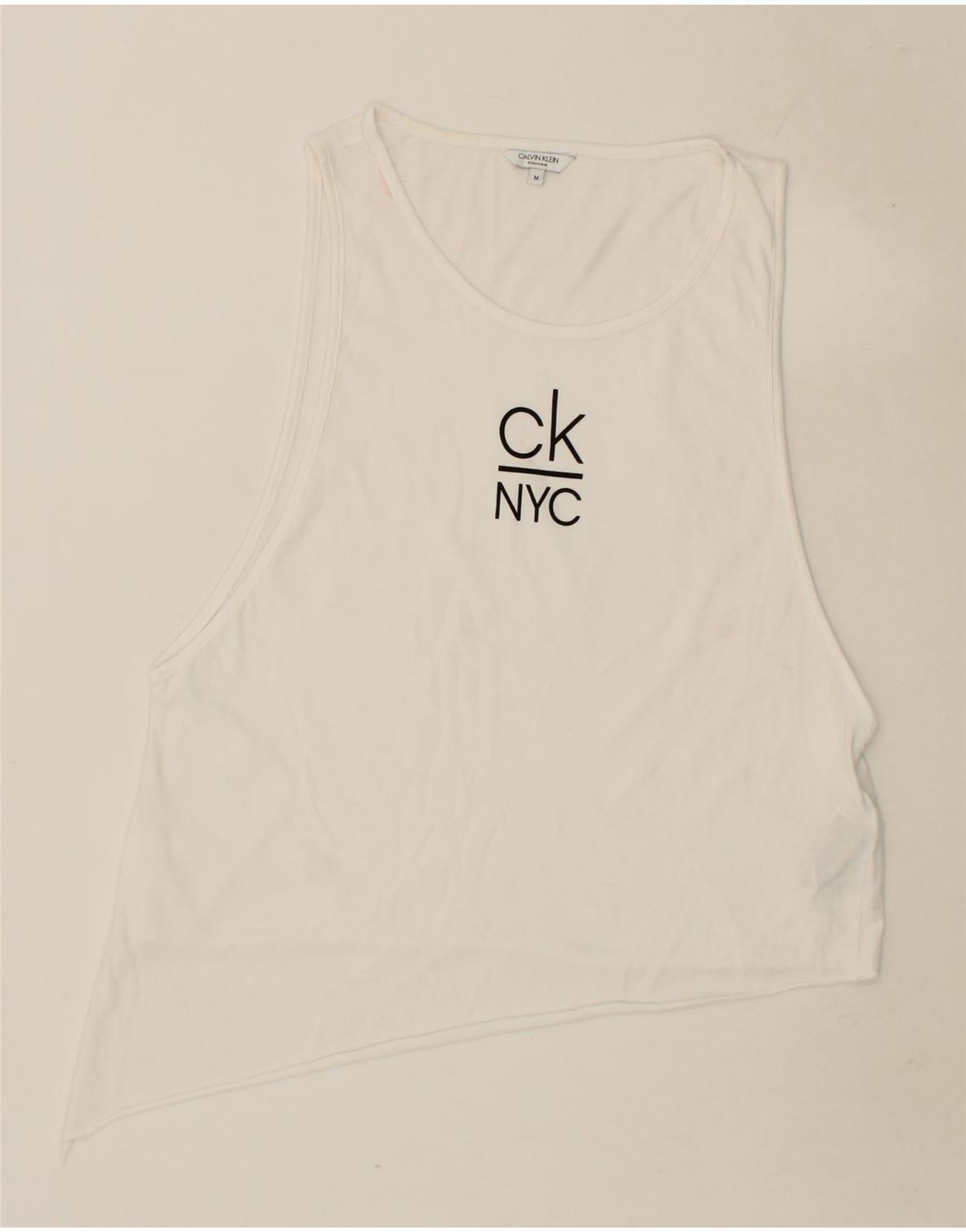 CALVIN KLEIN Womens NYC Graphic Asymmetric Vest Top UK 14 Medium White