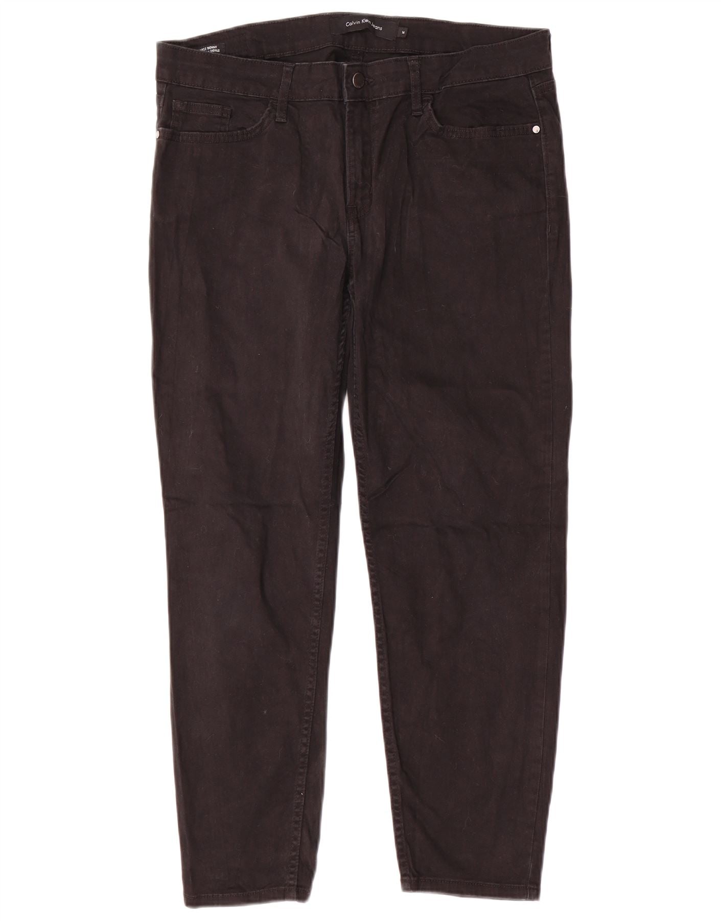 CALVIN KLEIN Pantalones casuales ajustados para mujer US 14 XL W34 L26 Algodón negro