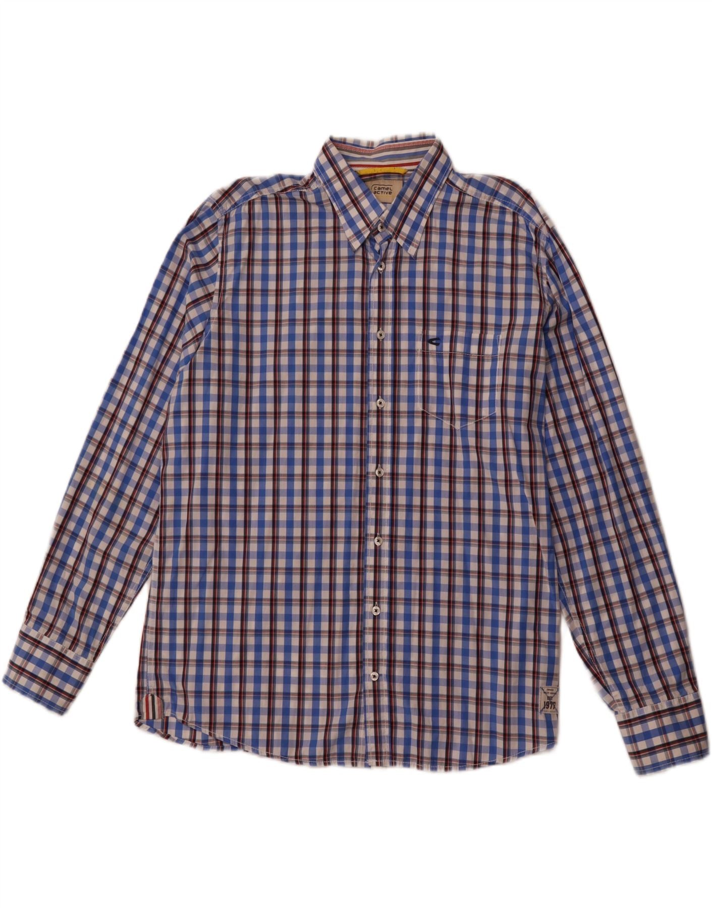 CAMEL ACTIVE Camisa Hombre XL Azul Cuadros Algodón