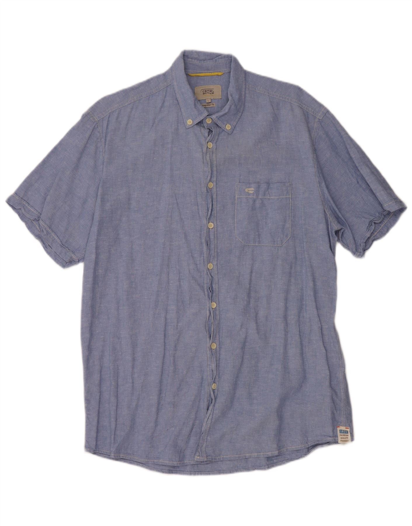 CAMEL ACTIVE Camisa de manga corta para hombre con ajuste regular y lino moteado azul grande