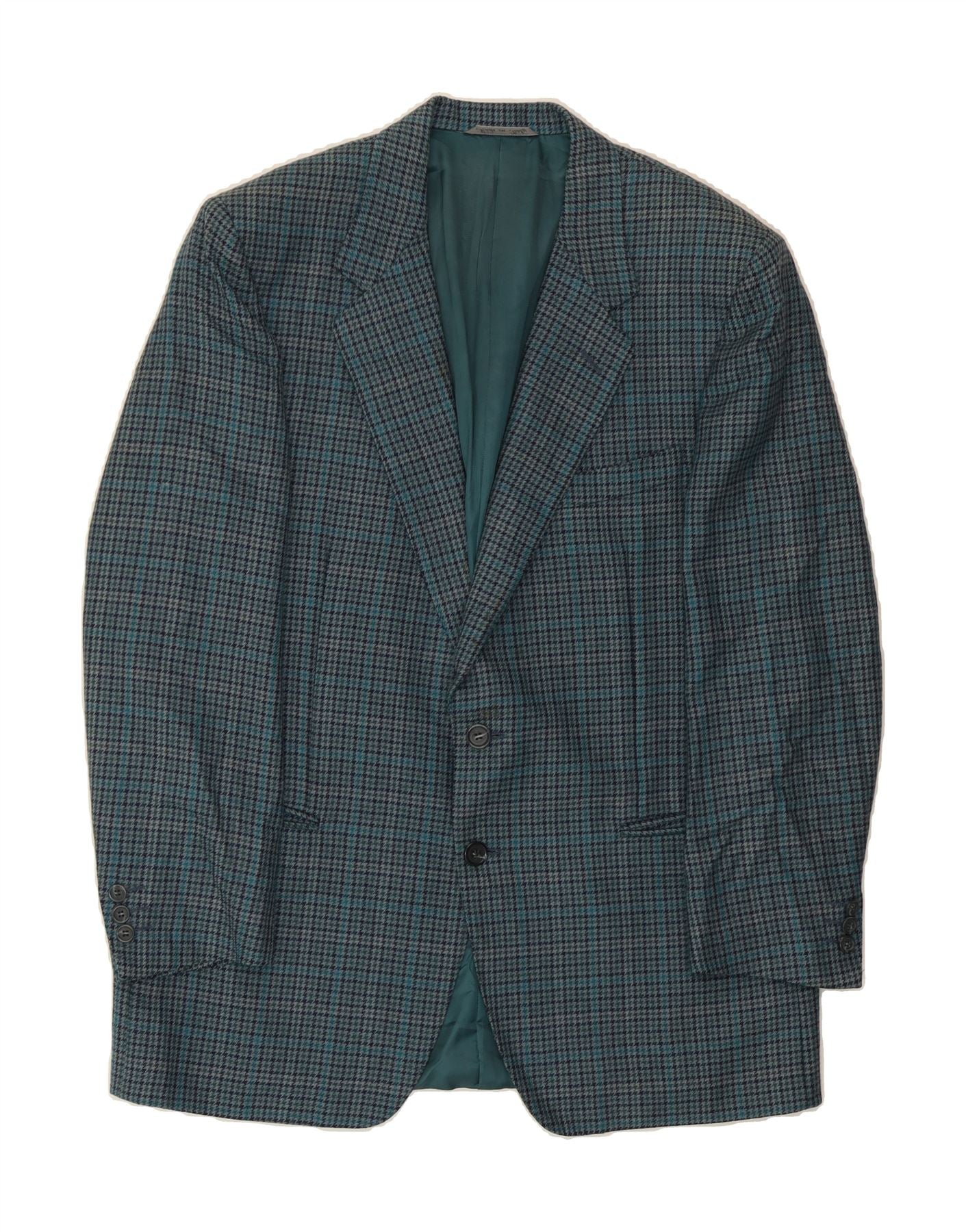 CANALI Mens 2 Button Blazer Jacket IT 50 Large Blue Houndstooth Wool