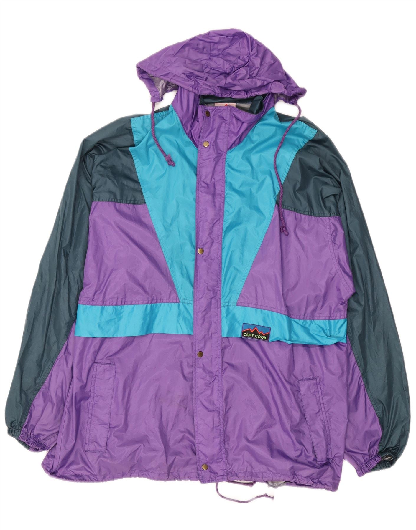 Capt. Cook Chaqueta impermeable con capucha para hombre UK 44 2XL Púrpura Colorblock Retro