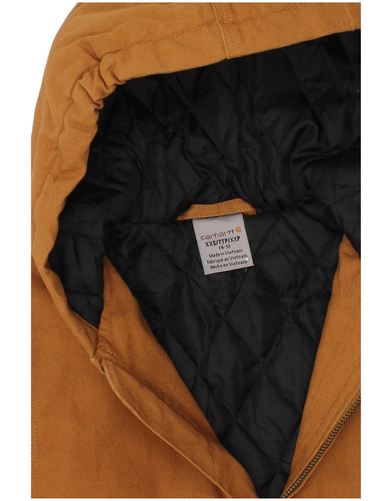 CARHARTT Boys Hooded Bomber Jacket 4-5 Years 2XS Brown Cotton