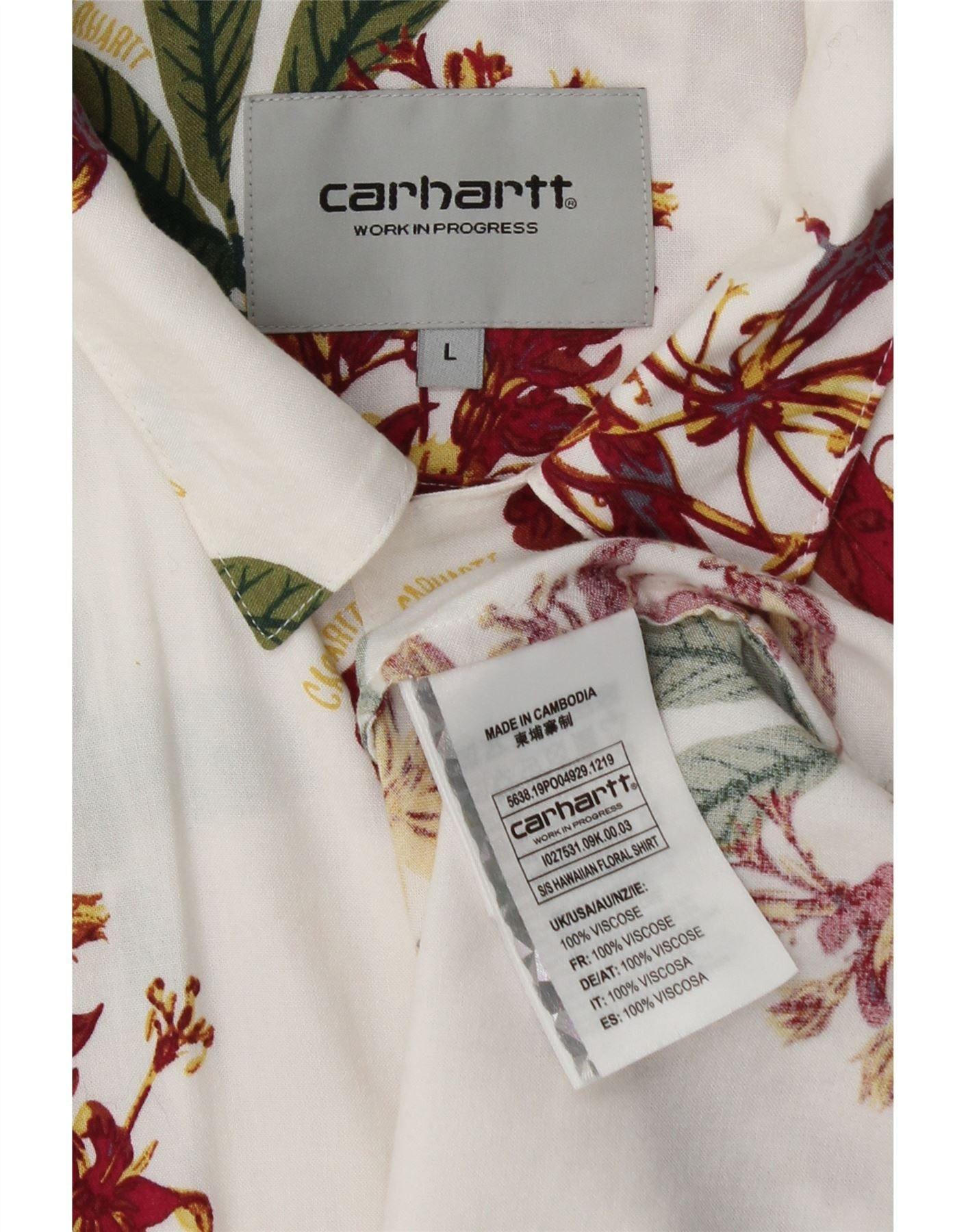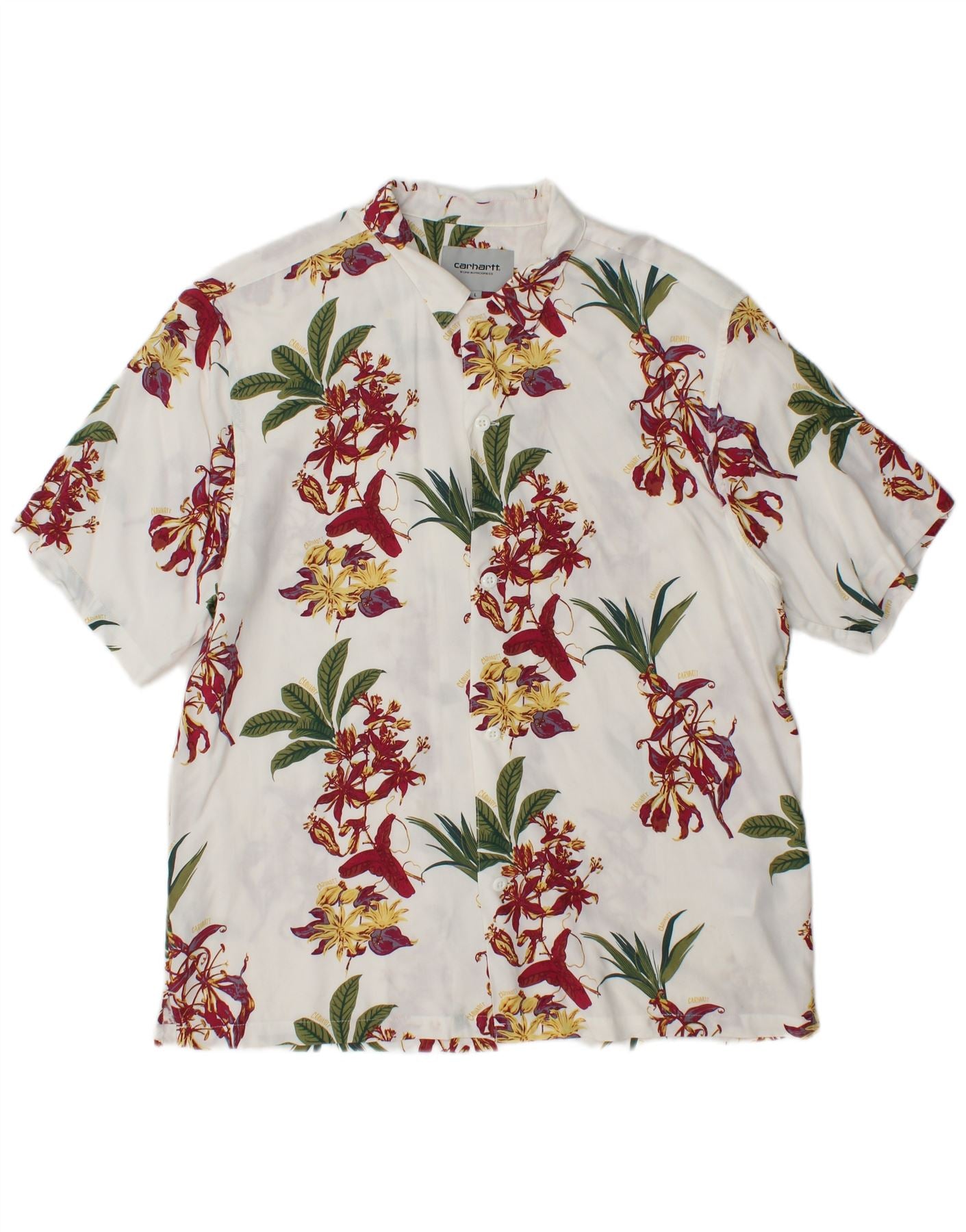 CARHARTT Camisa hawaiana de manga corta para hombre de viscosa floral blanca grande