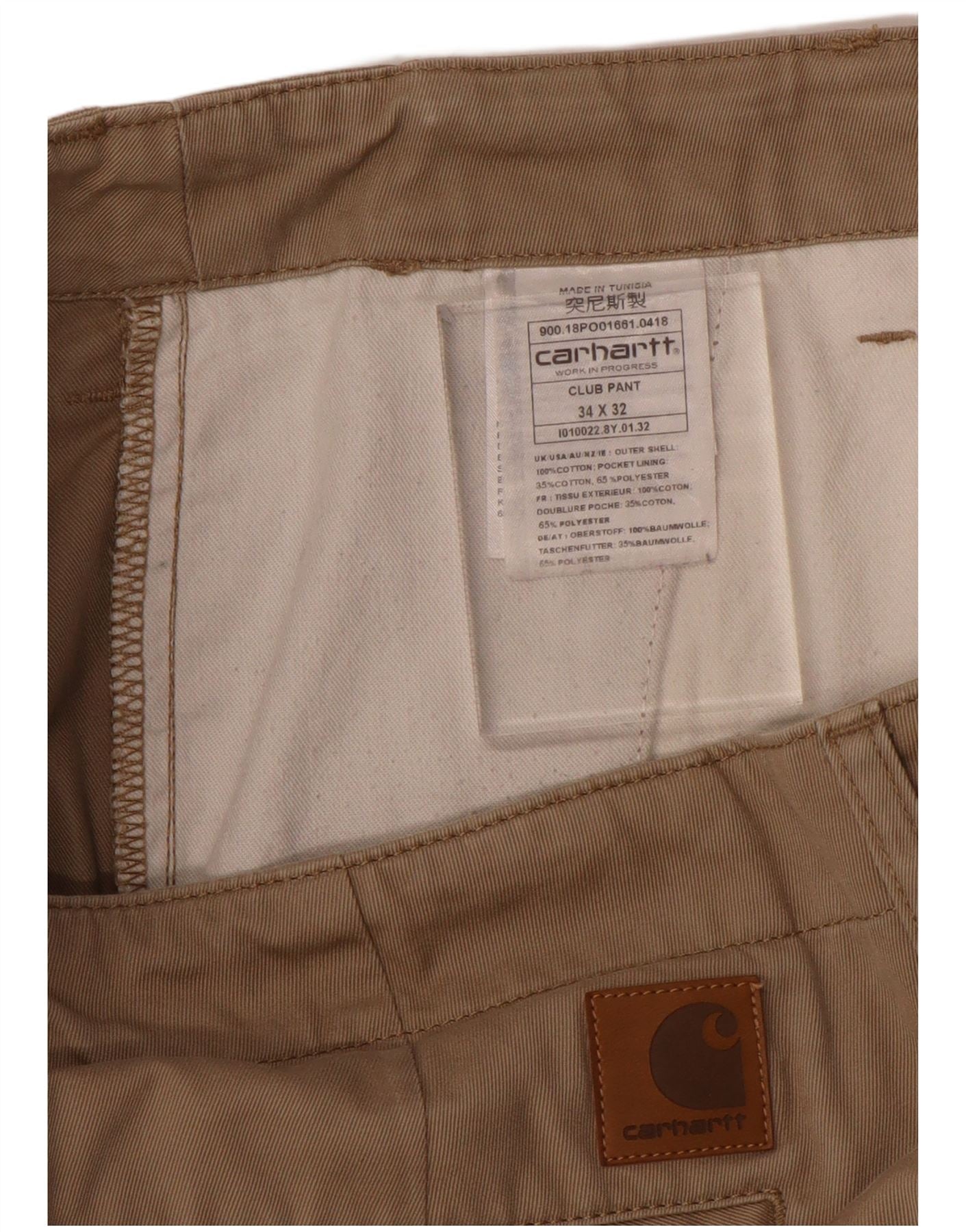 CARHARTT Pantalón chino ajustado para hombre W34 L32 Algodón beige