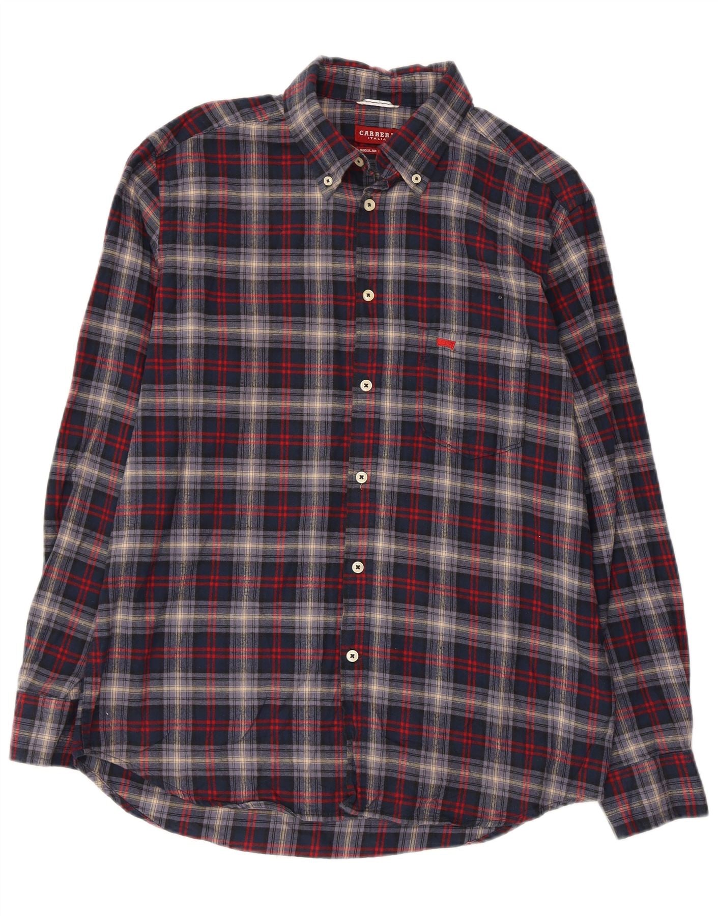 Home > Ropa Vintage Carrera > de los hombres > CARRERA Camisa de franela de ajuste regular para hombre Cuadros grandes en azul marino