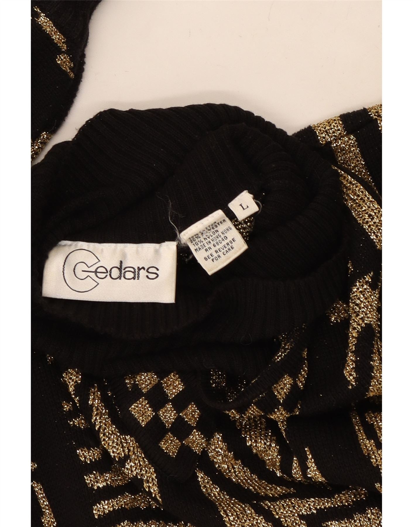 CEDARS Womens Oversized Roll Neck Jumper Sweater UK 16 Large Black Paisley