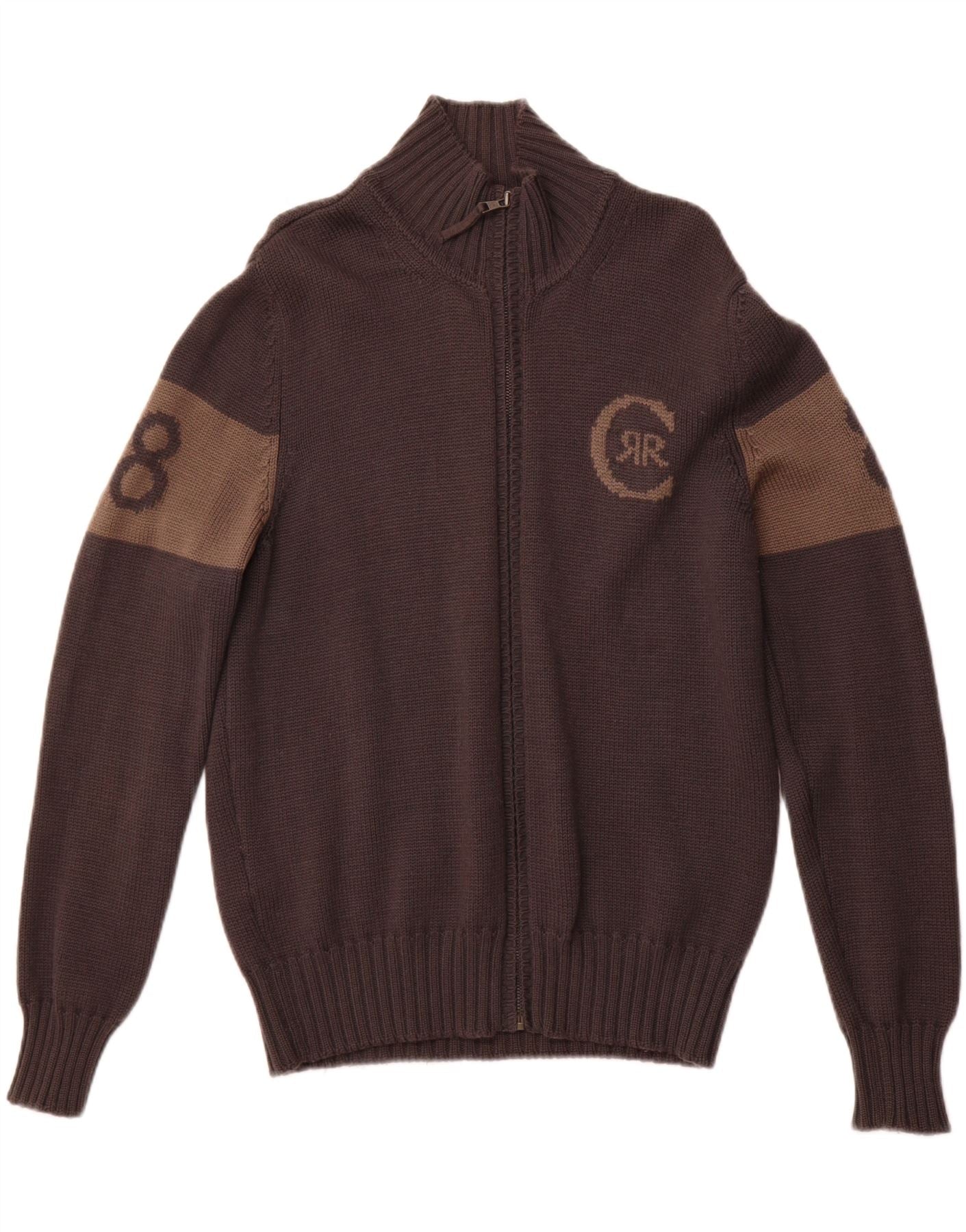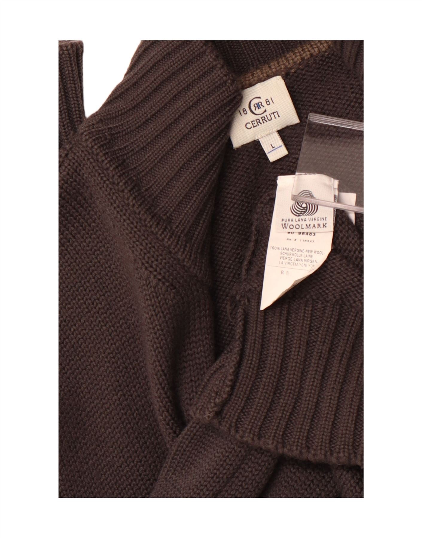 CERRUTI 1881 Cárdigan gráfico para hombre suéter grande gris color block lana virgen