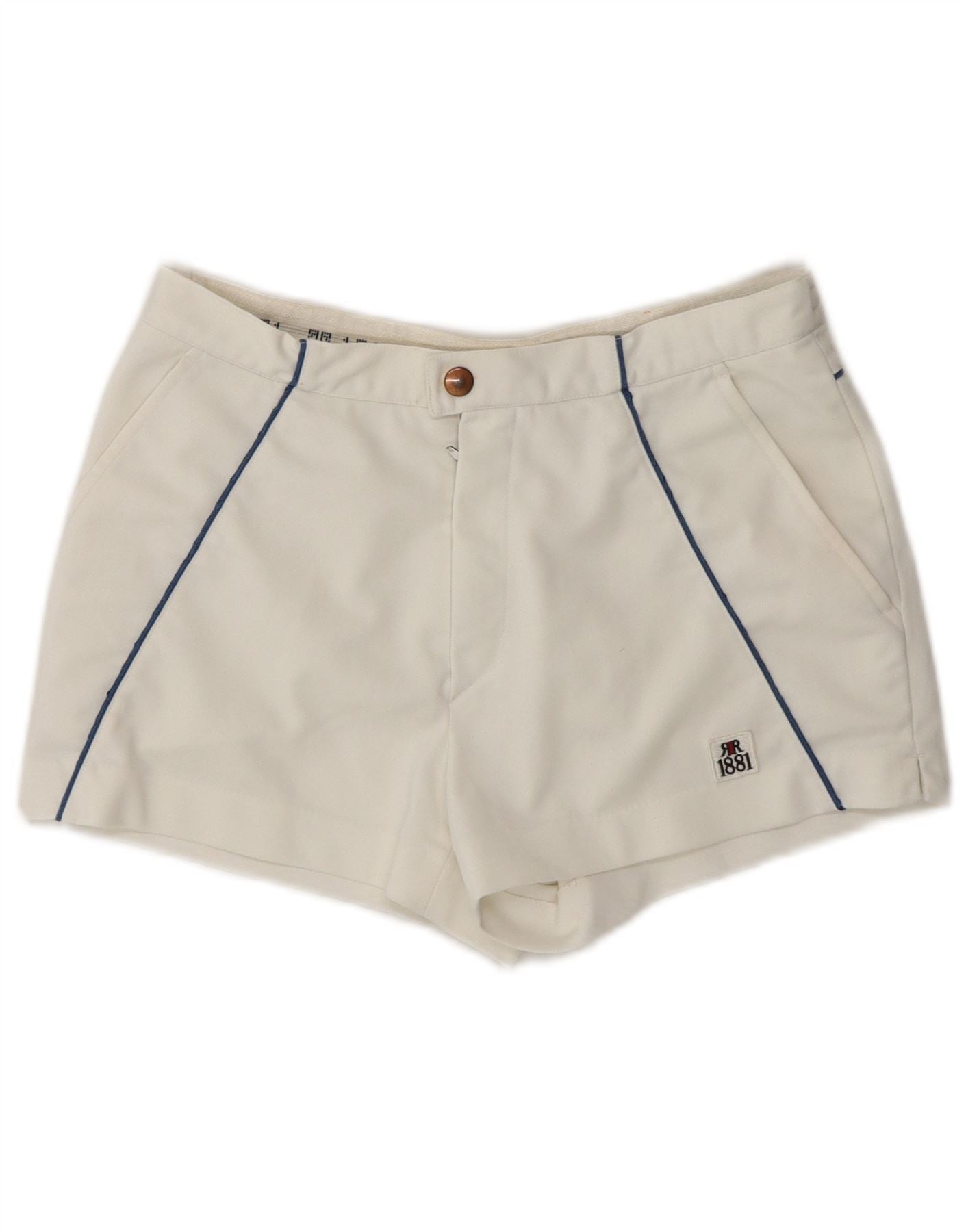 - AI Description: These Cerruti 1881 womens casual shorts are crafted from a crisp off white woven fabric. They feature a regular fit for comfortable wear. A button closure secures the waist. Practical pockets are included. A subtle logo accent adds a signature touch. This design offers a clean, versatile look for everyday styling.