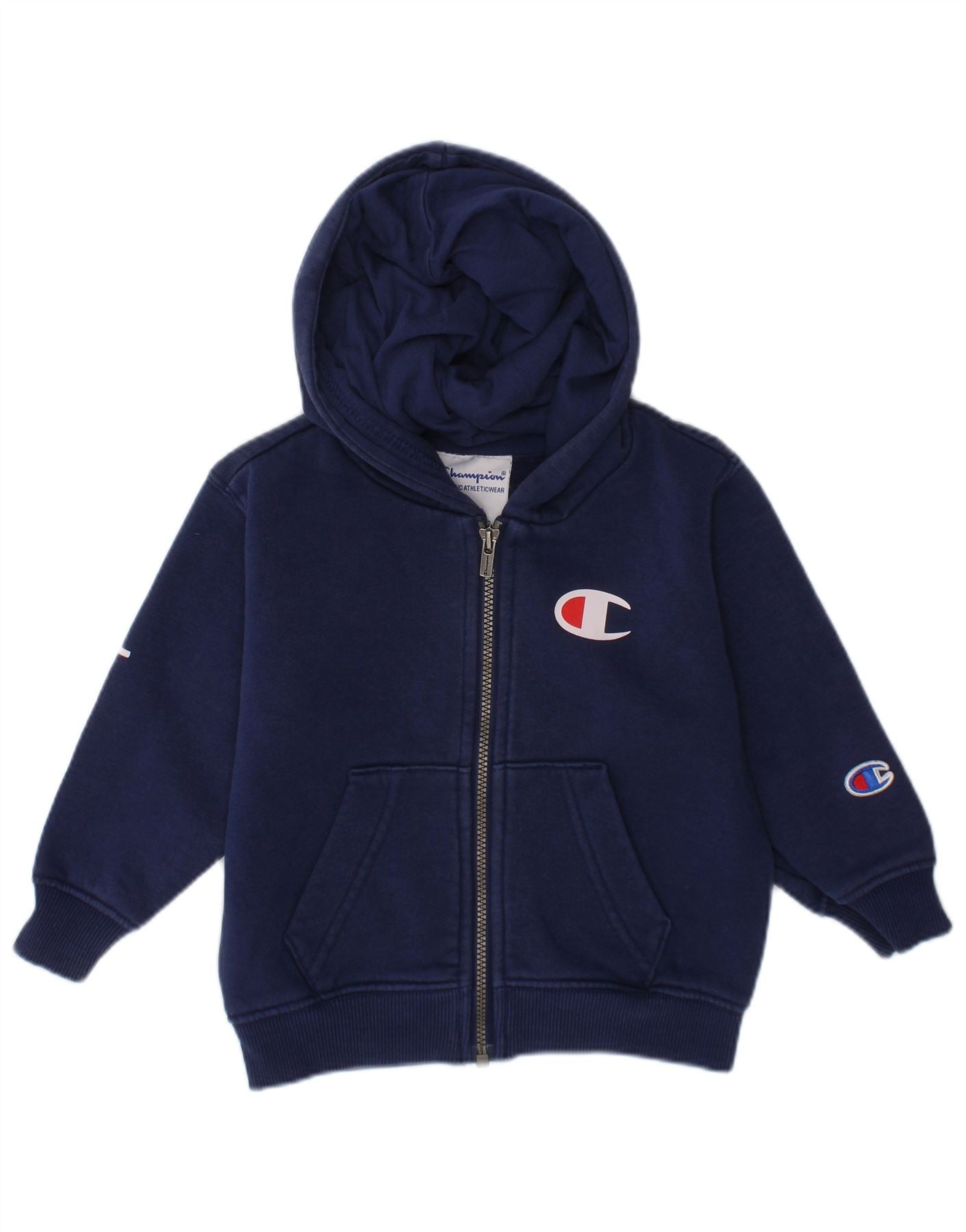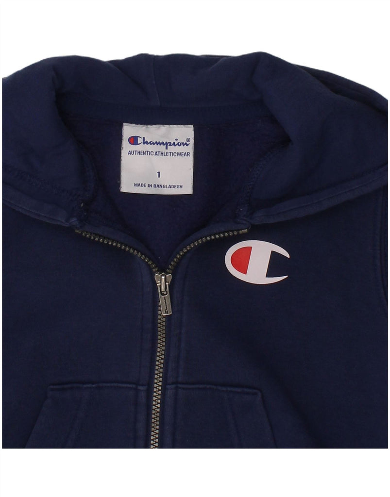 CHAMPION Baby Boys Graphic Zip Hoodie Sweater 9-12 Months Navy Blue Cotton