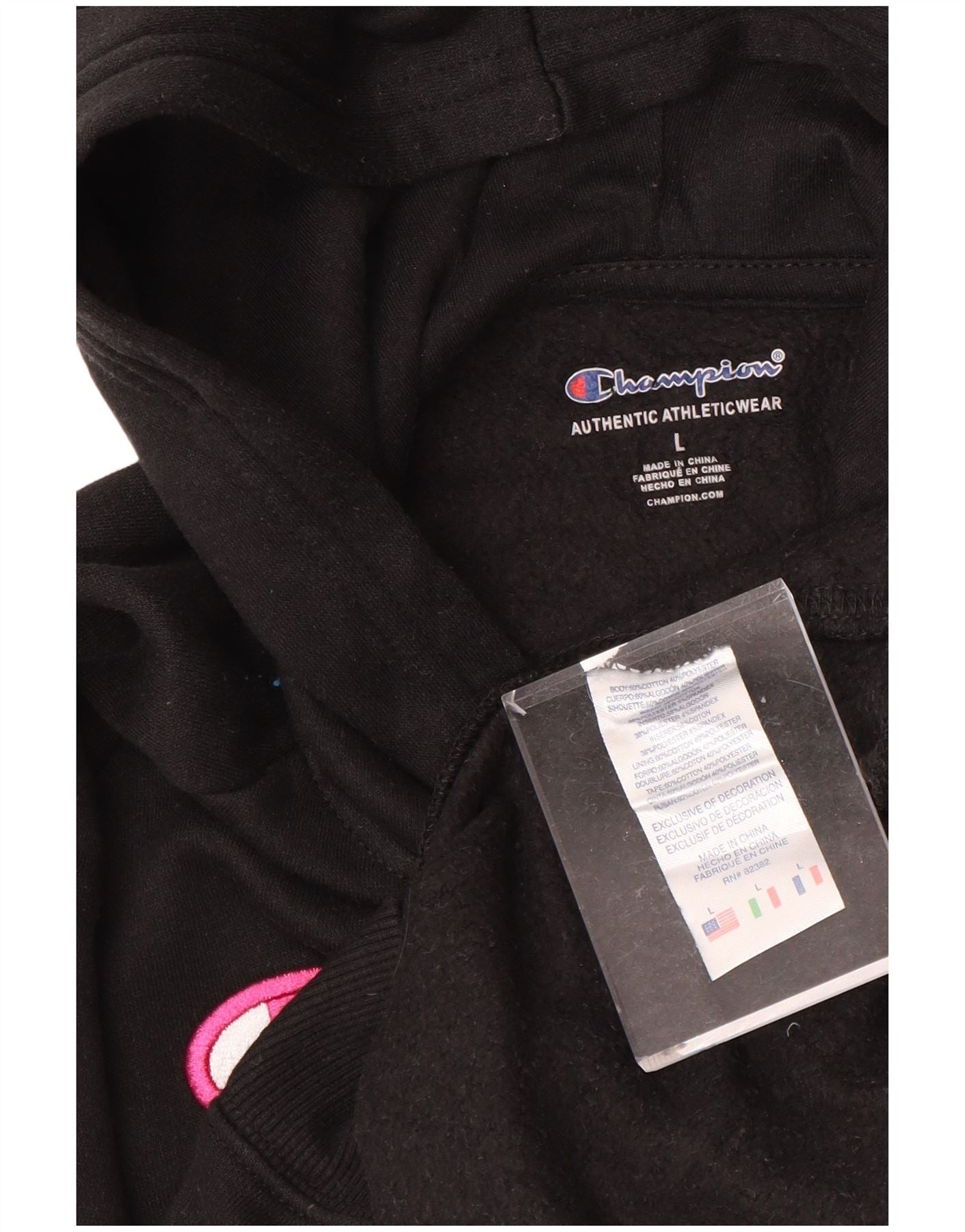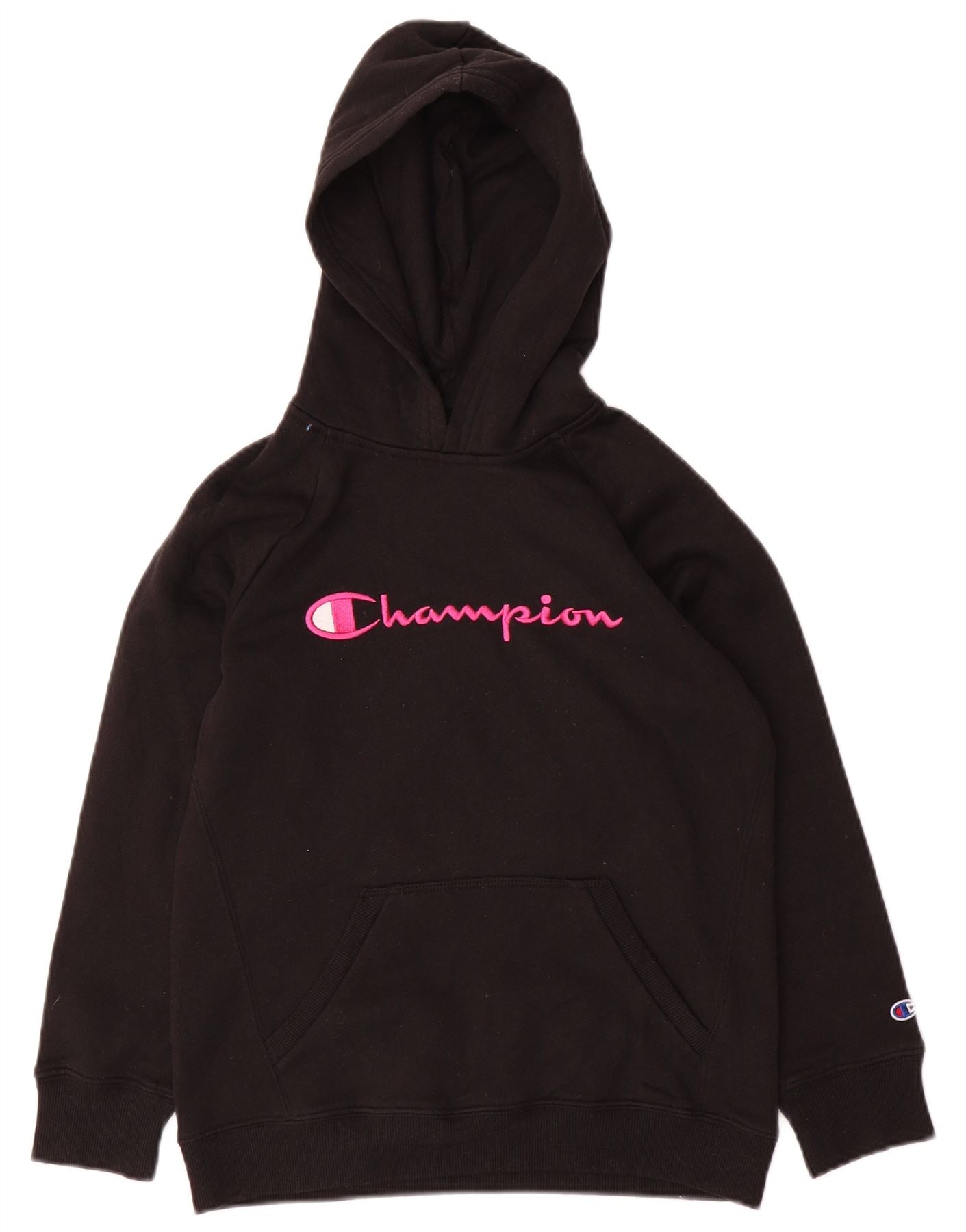 CHAMPION Jersey con capucha gráfica para niñas 11-12 años Grande Negro