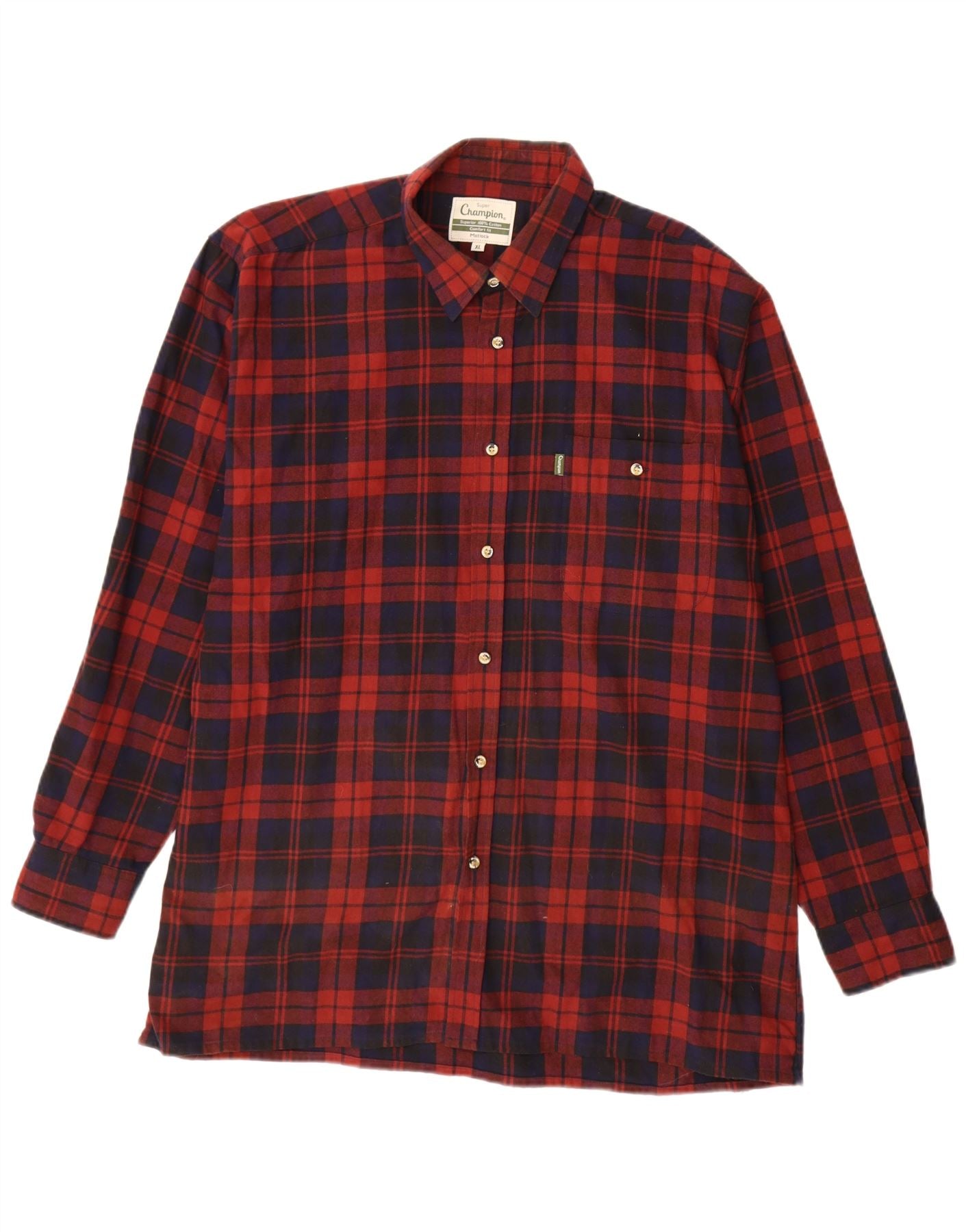 CHAMPION Camisa de franela de ajuste cómodo para hombre XL Algodón a cuadros rojos
