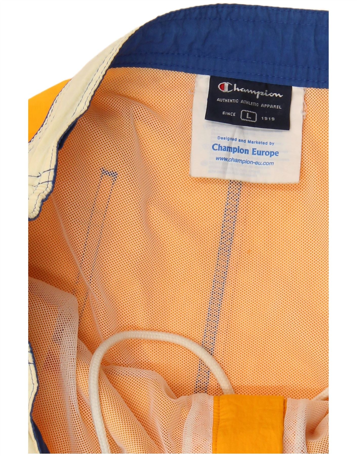 - Descripción de IA: Estos shorts de baño para hombre Champion están confeccionados con un tejido ligero de color naranja. Cuentan con una cómoda cintura elástica con cierre de cordón para un ajuste regular ajustable. El corte recto garantiza facilidad de movimiento. Se incluyen prácticos bolsillos. Las rayas laterales blancas añaden un contraste deportivo. Aparece un logotipo de Champion bordado en la parte delantera, con un parche en la parte posterior.