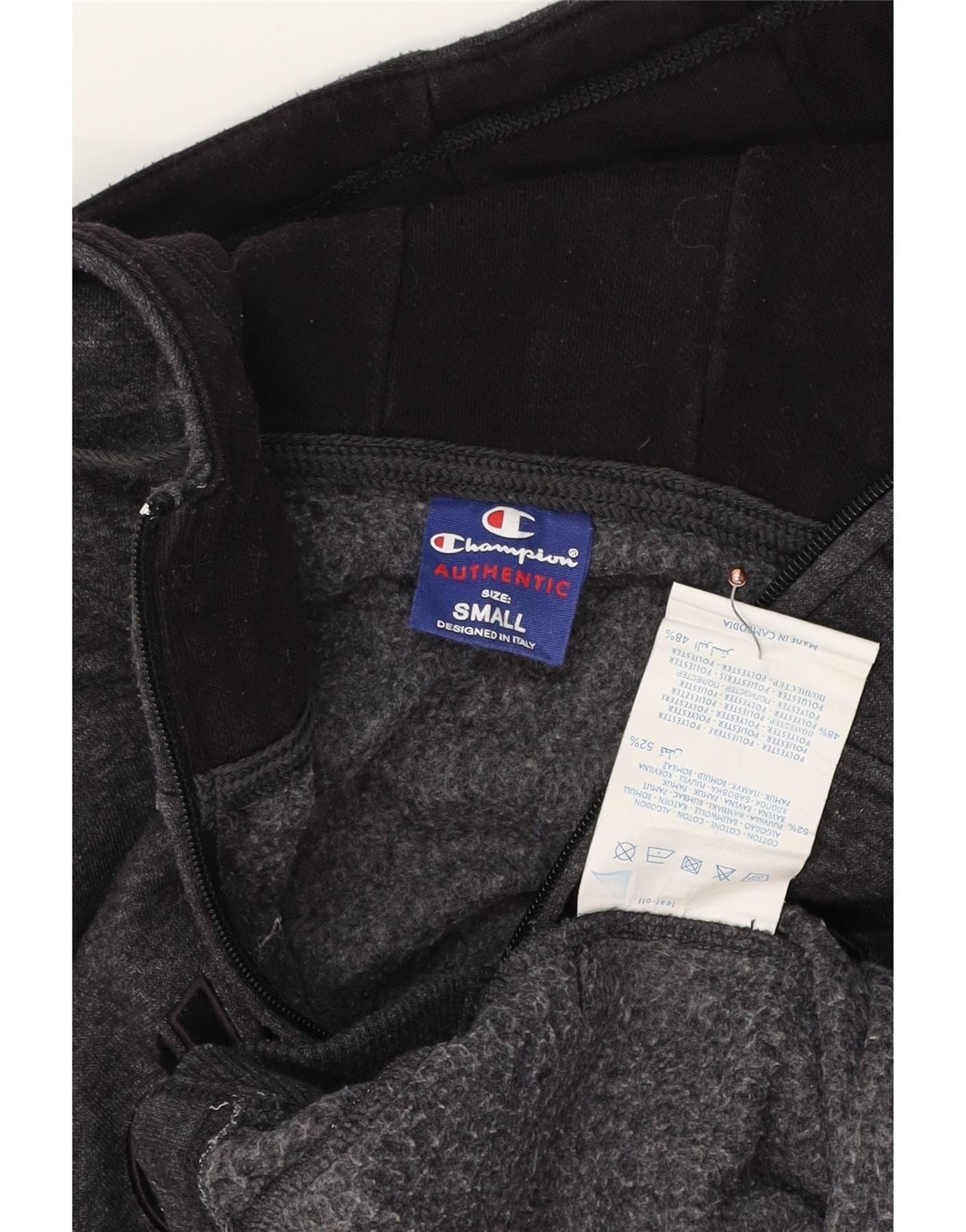 Home > Ropa de campeón vintage > de los hombres > Sudadera > CHAMPION Suéter con capucha y cremallera gráfica para hombre Pequeño algodón moteado gris