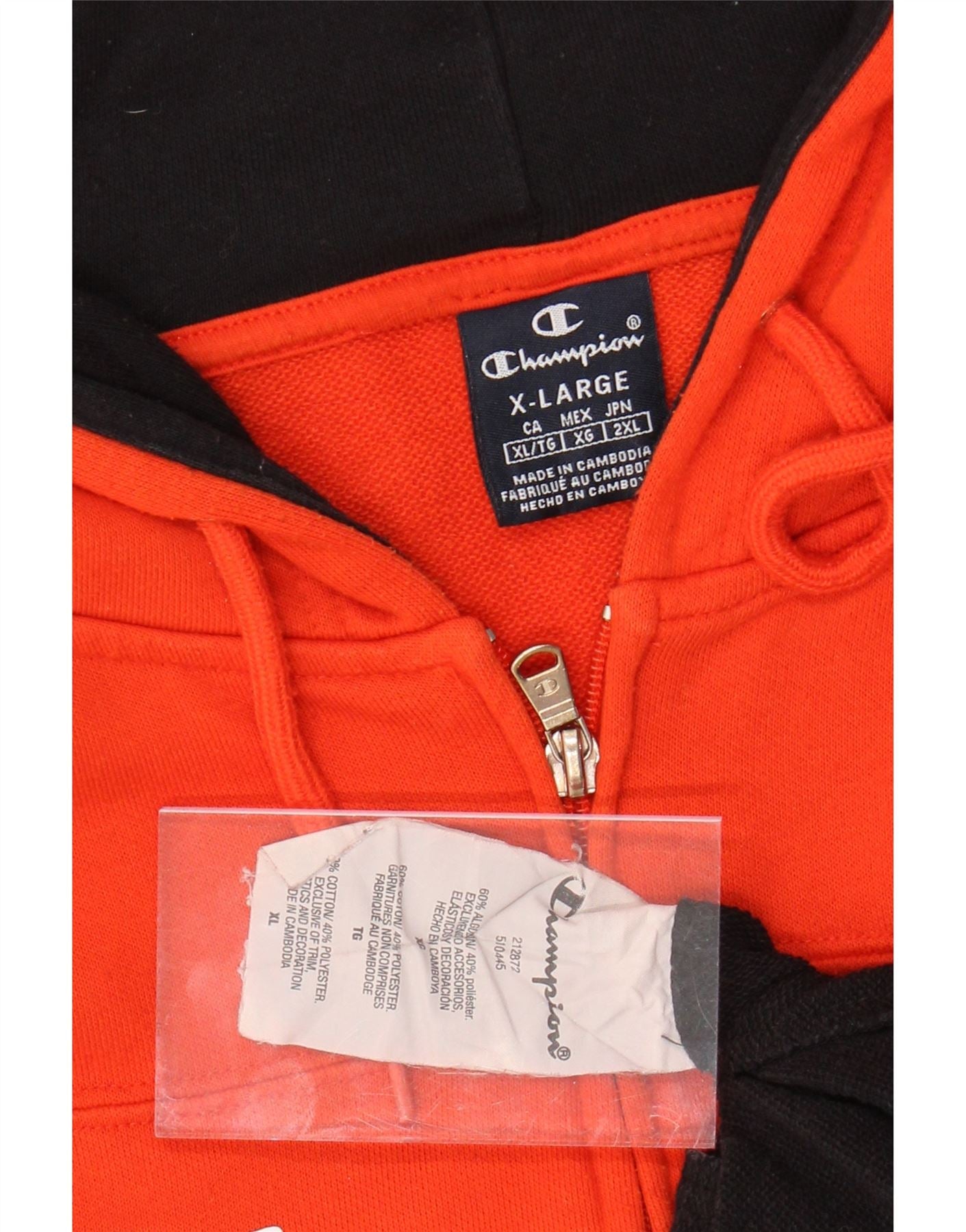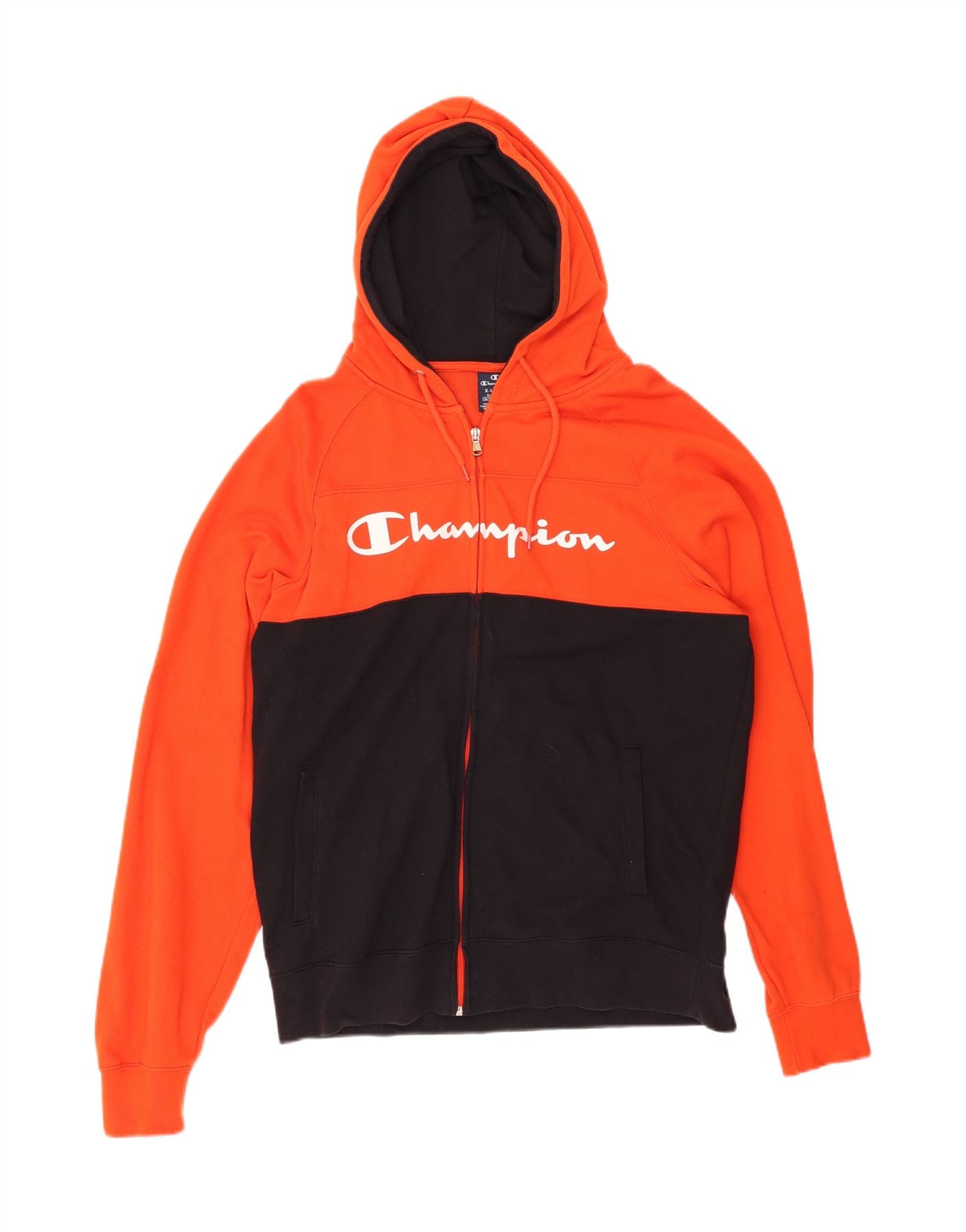 CHAMPION Suéter con capucha y cremallera gráfica para hombre XL Algodón con bloques de color naranja