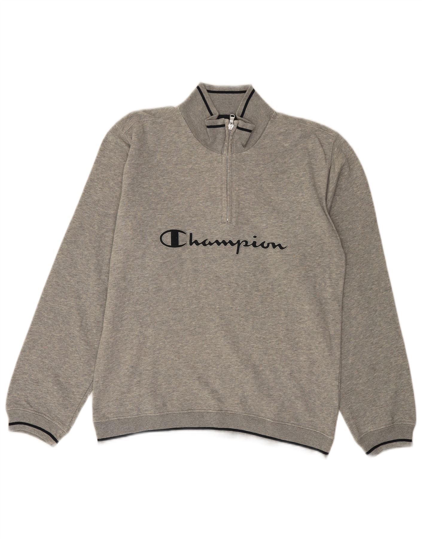 Home > Ropa de campeón vintage > de los hombres > Sudaderas > CHAMPION Sudadera con cuello y cremallera gráfica para hombre Jumper Small Grey Cotton