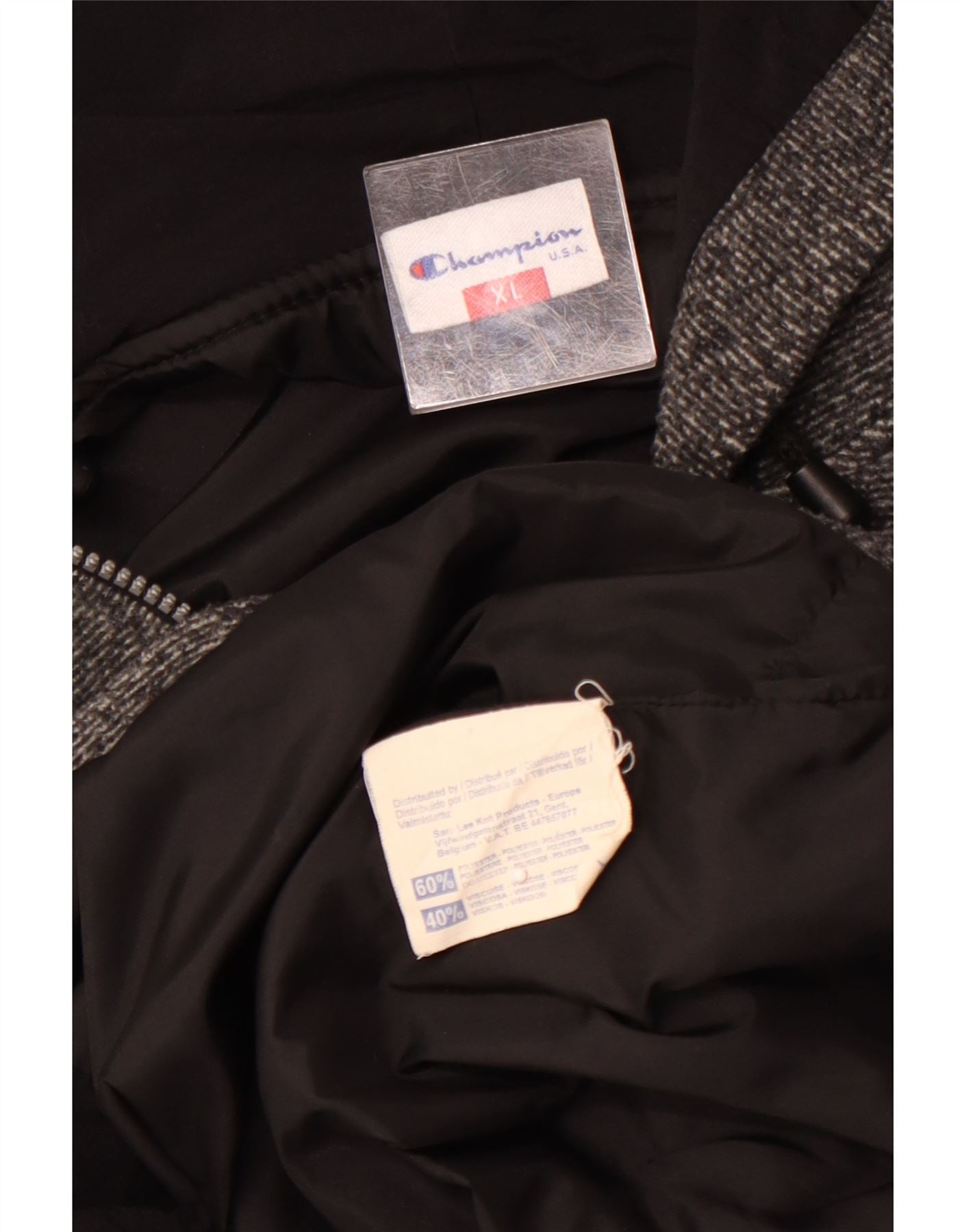 Home > Ropa de campeón vintage > de los hombres > Lana > CHAMPION Chaqueta polar con capucha para hombre UK 42 XL Poliéster gris a rayas