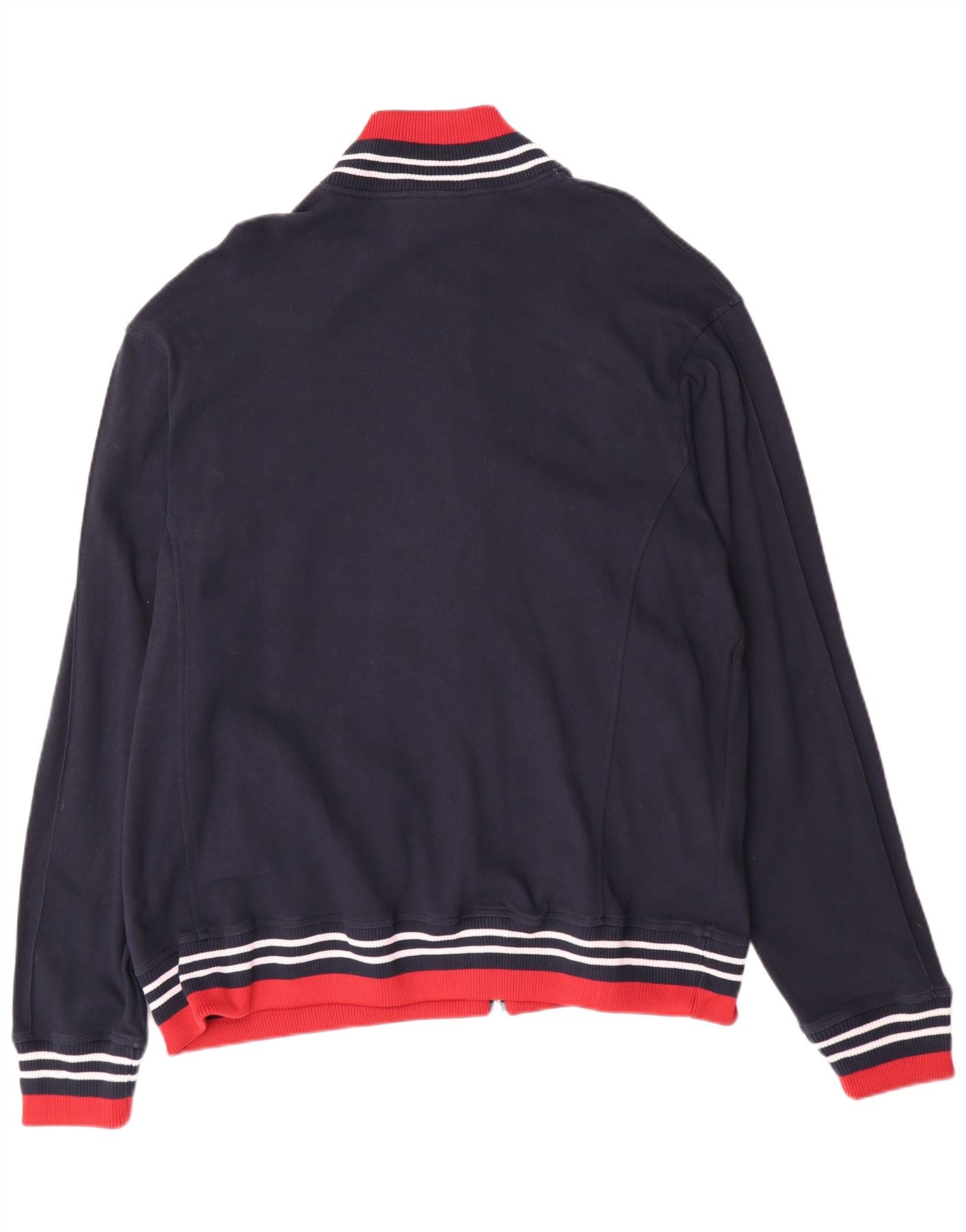 - Descripción de IA: Esta chaqueta superior de chándal Champion para hombre está confeccionada con un suave jersey de algodón 100 % azul marino. Presenta un escote con cuello y detalles de rayas rojas y blancas. Las mangas largas y el corte regular garantizan comodidad. Un cierre de cremallera completo recorre la parte delantera. Los puños y el dobladillo de canalé también presentan rayas rojas y blancas a juego. Se incluyen dos prácticos bolsillos. Un sutil logotipo de Champion añade un toque característico.