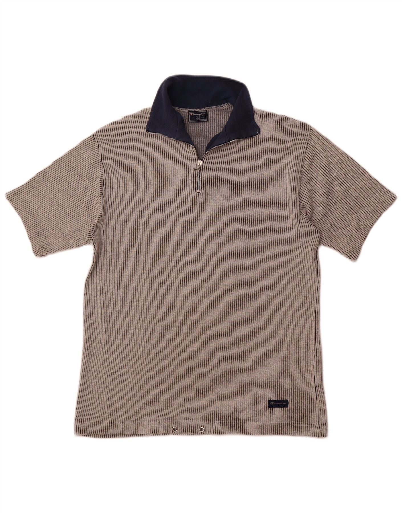 Home > Ropa de campeón vintage > de los hombres > Camisetas > CHAMPION Camiseta con cuello y cremallera para hombre Top grande de algodón a rayas grises