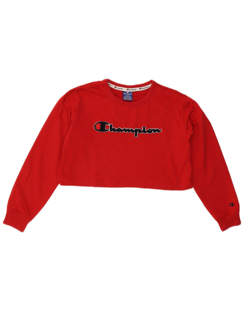 CHAMPION Womens Crop Graphic Sweatshirt Jumper UK 10 Small Red Cotton