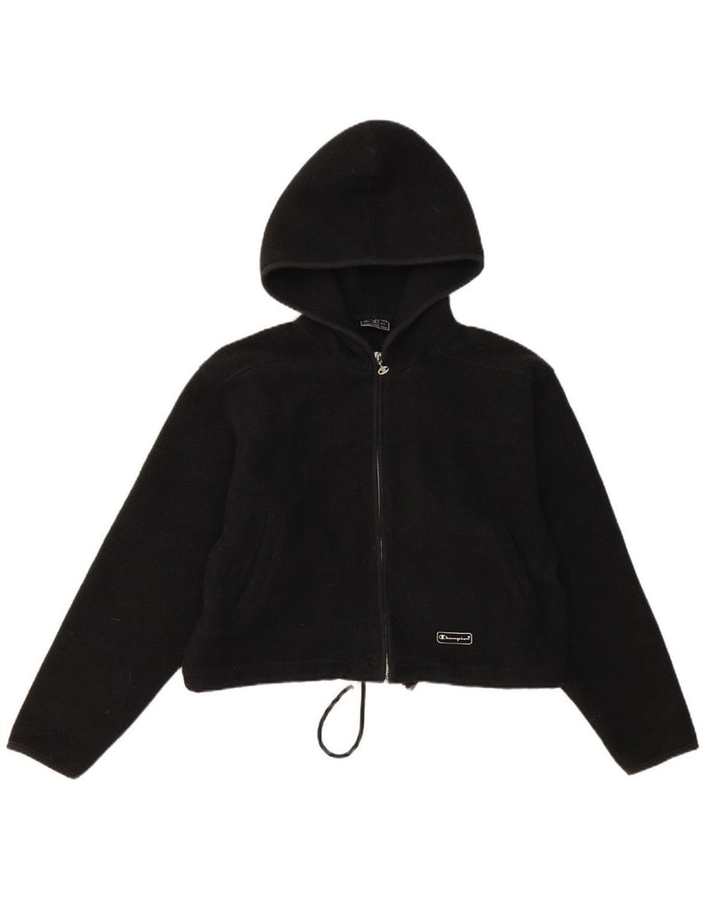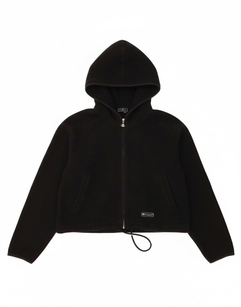 CHAMPION Womens Crop Hooded Fleece Jacket UK 10 Small Black Polyester