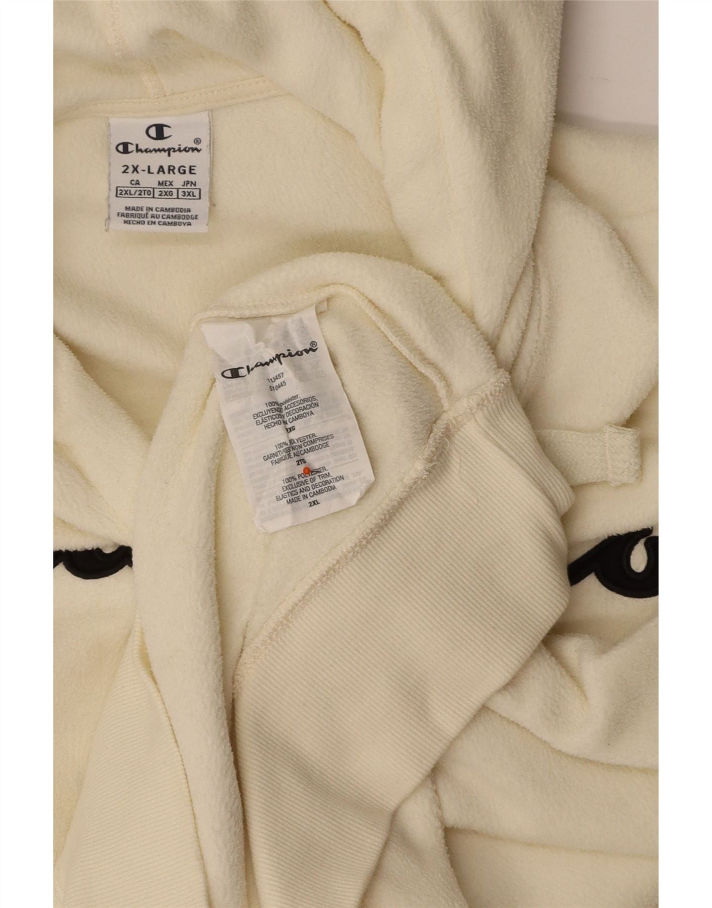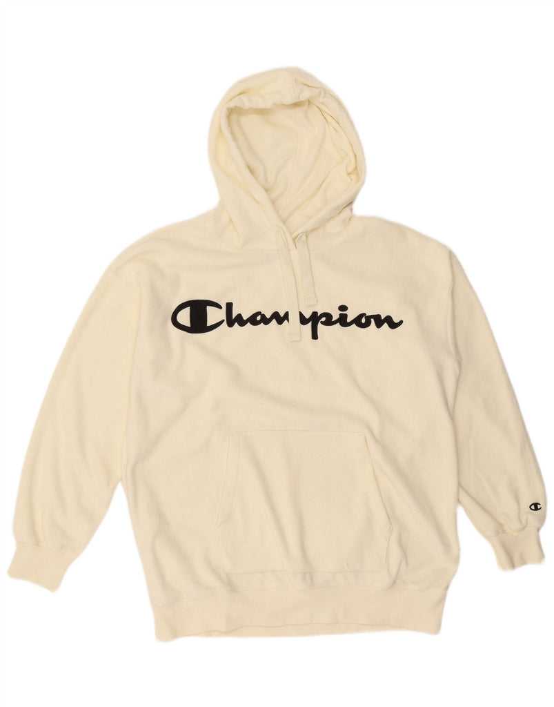 CHAMPION Womens Graphic Fleece Hoodie Jumper UK 20 2XL Off White Polyester