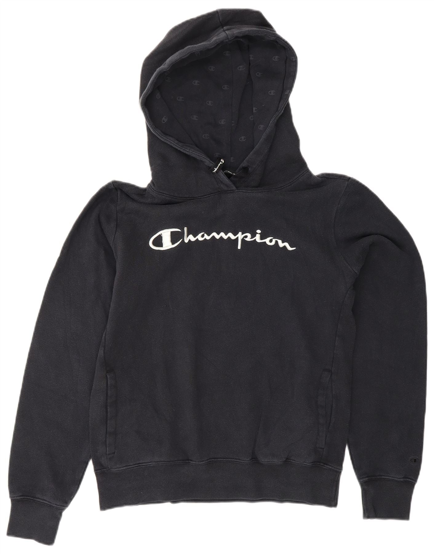 CHAMPION Jersey con capucha gráfica para mujer Reino Unido 12 Algodón azul marino mediano