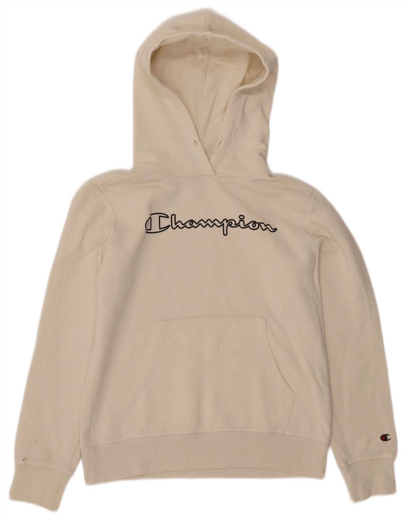 Home > Ropa de campeón vintage > De las mujeres > Sudadera > CHAMPION Jersey con capucha gráfico para mujer Reino Unido 14 Algodón blanco mediano
