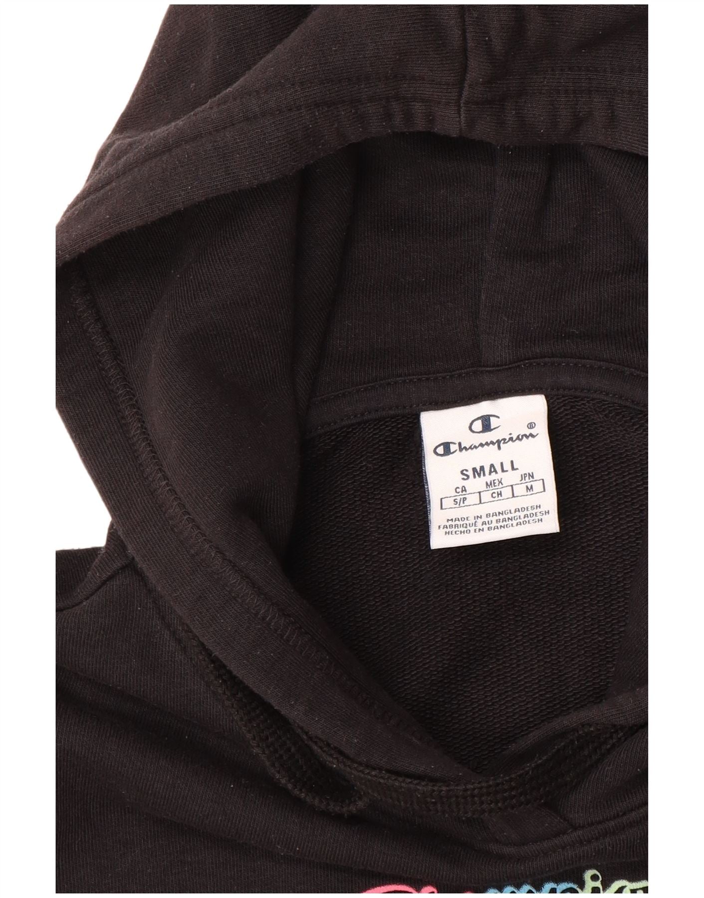 Home > Ropa de campeón vintage > De las mujeres > Sudadera > Champion Sudadera con capucha gráfica de gran tamaño para mujer UK 10 Small Black
