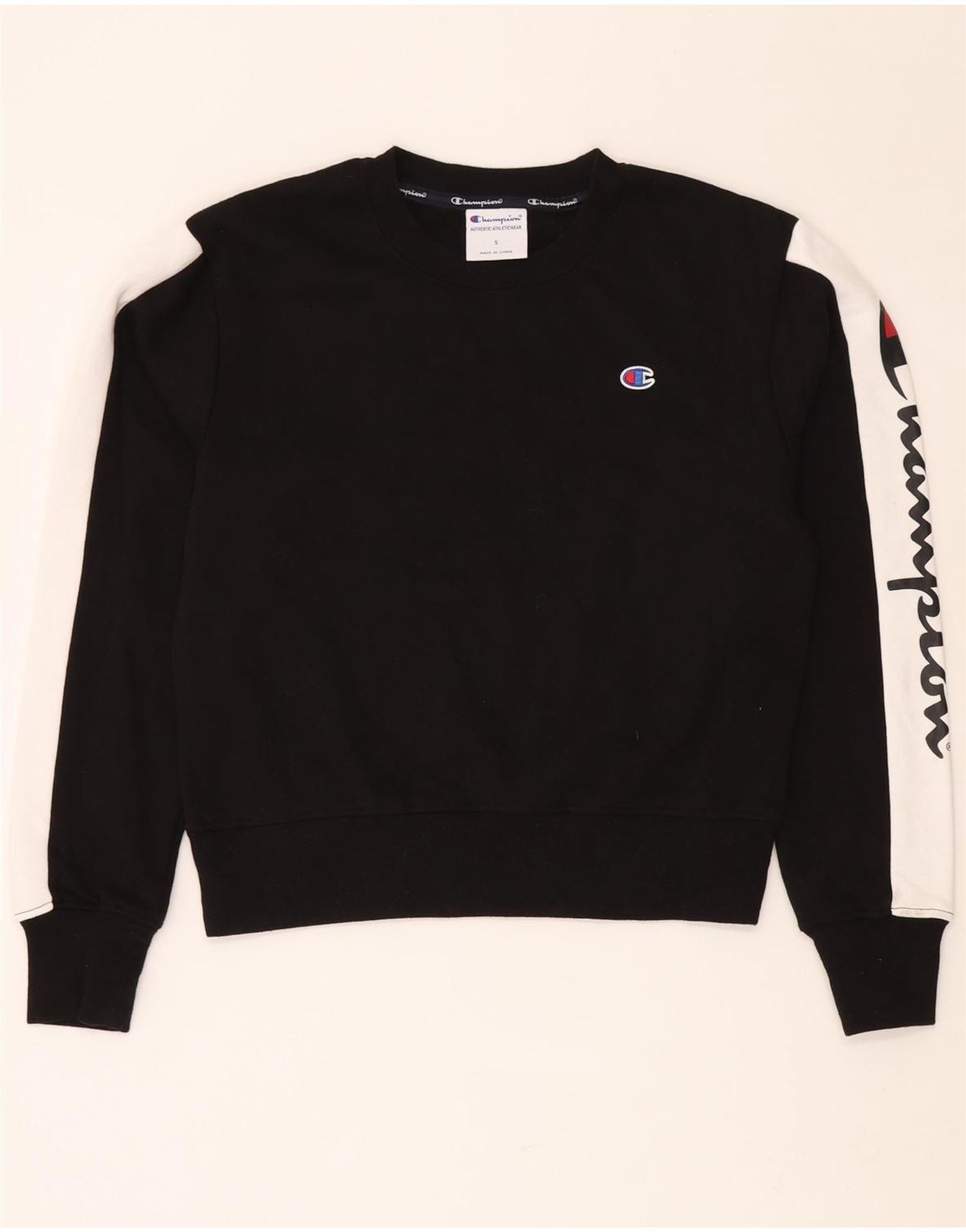 CHAMPION Womens Graphic Sweatshirt Jumper UK 10 Small Black Colourblock