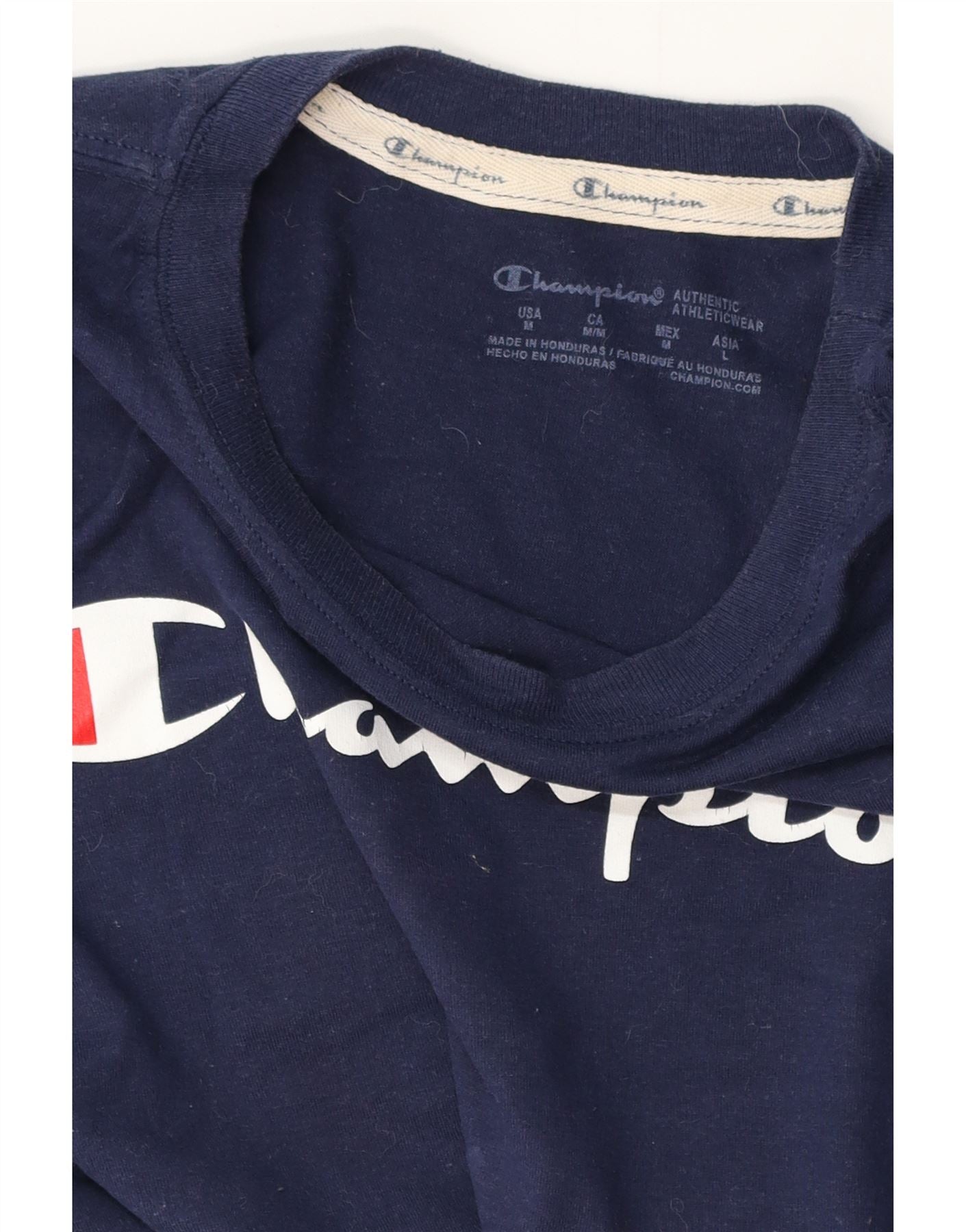 Home > Ropa de campeón vintage > De las mujeres > Camisetas > CHAMPION Camiseta gráfica para mujer Top UK 12 Medium Azul marino