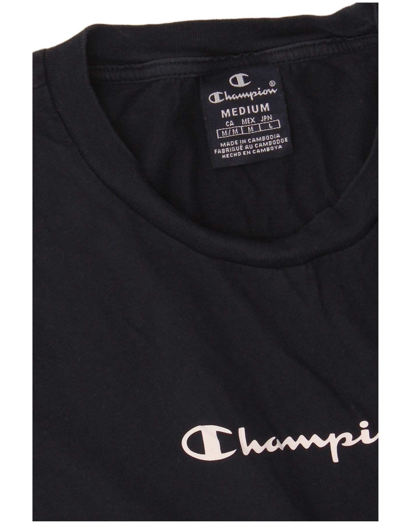 Home > Ropa de campeón vintage > De las mujeres > Camisetas > CHAMPION Camiseta gráfica para mujer Top UK 40 Medium Azul marino Colorblock