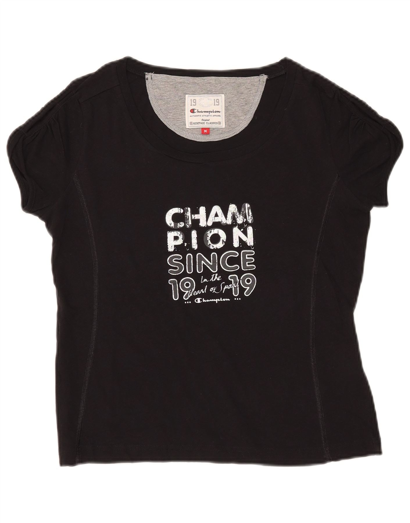 Home > Ropa de campeón vintage > De las mujeres > Camisetas > CHAMPION Camiseta con gráfico Heritage Classics para mujer UK 40 M Negro